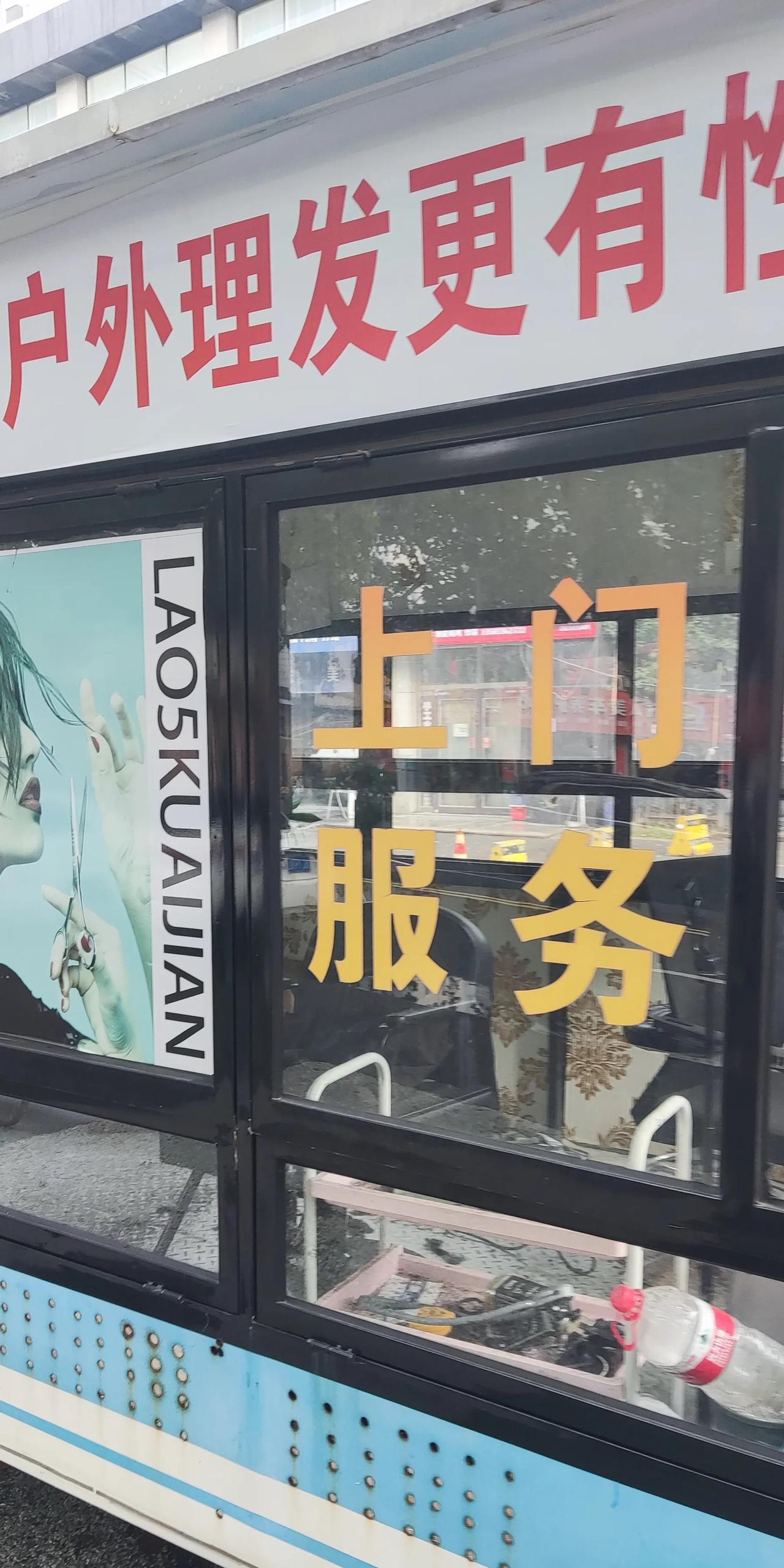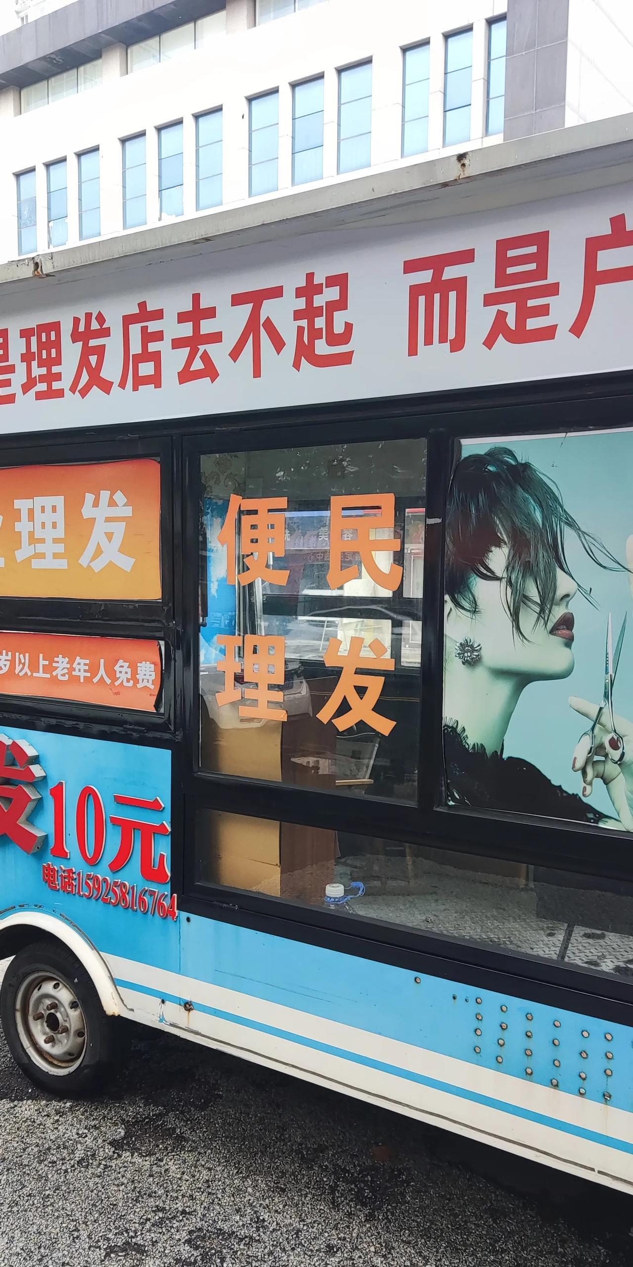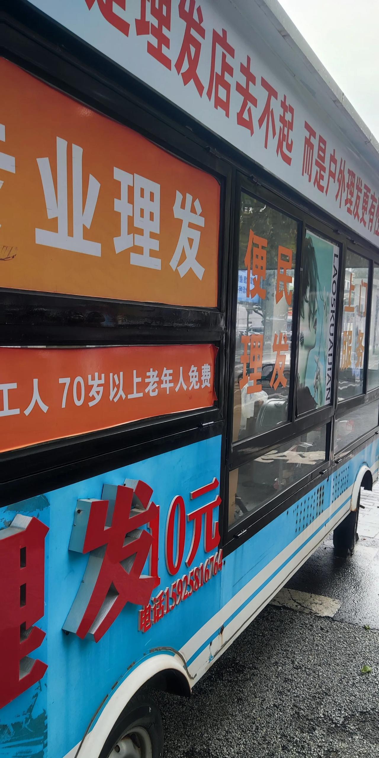 在这里理发,你猜多少钱? 今天我在公交车站等车,发现路旁一辆房车改成了理发室,装