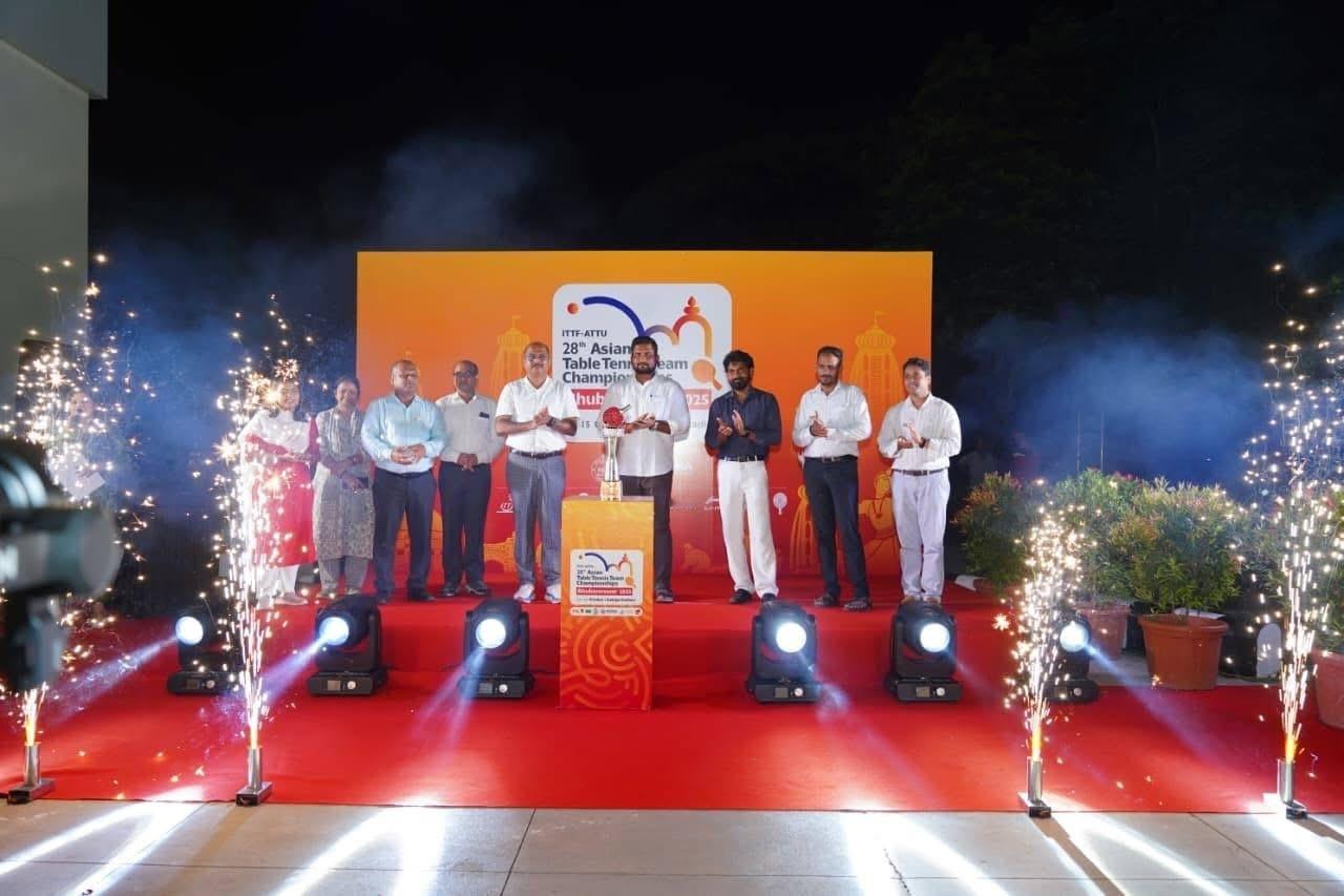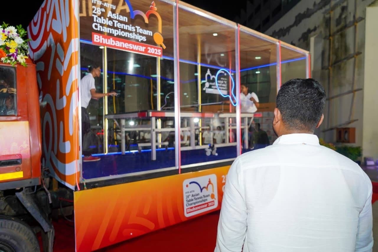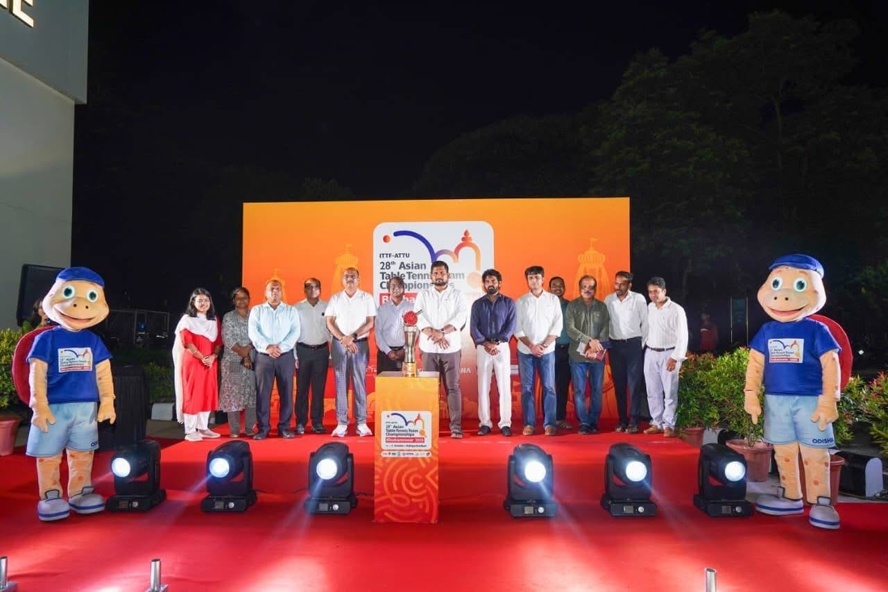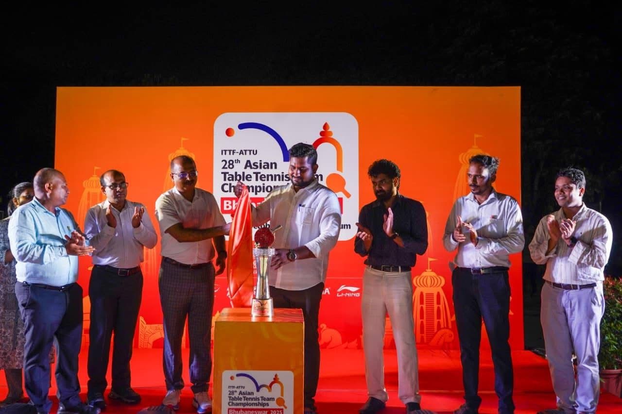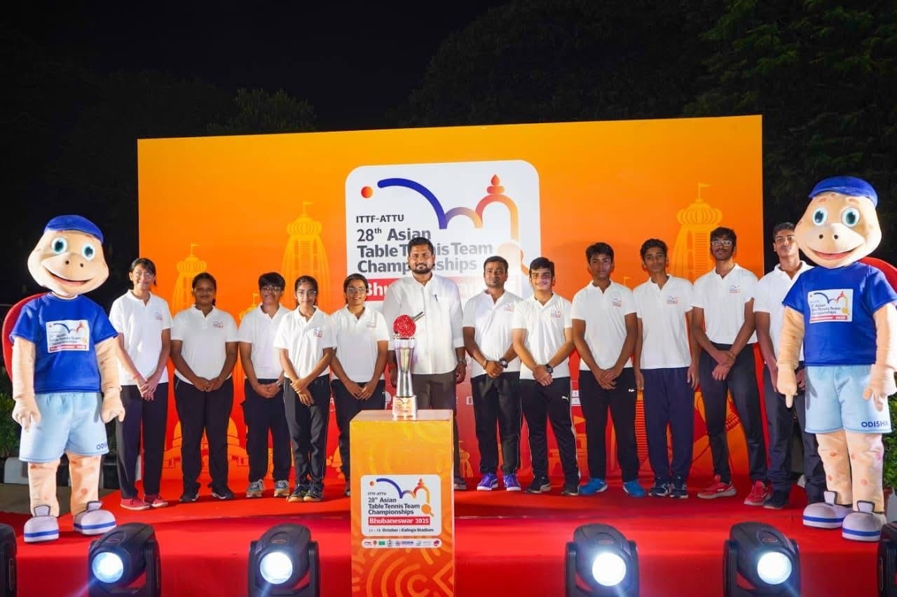 【机翻】尊敬的体育与青年服务部长阁下 Suryabanshi Suraj 在 卡林加体育馆 公布了2025年国际乒联-ATTU 第28届亚洲乒乓球团体锦标赛的闪耀奖杯,标志着 奥里萨有史以来第一次大陆洲际赛事。 奖杯和吉祥物“Olly”将在10月11日至15日赛前巡回演出,传播激动人心的情绪!