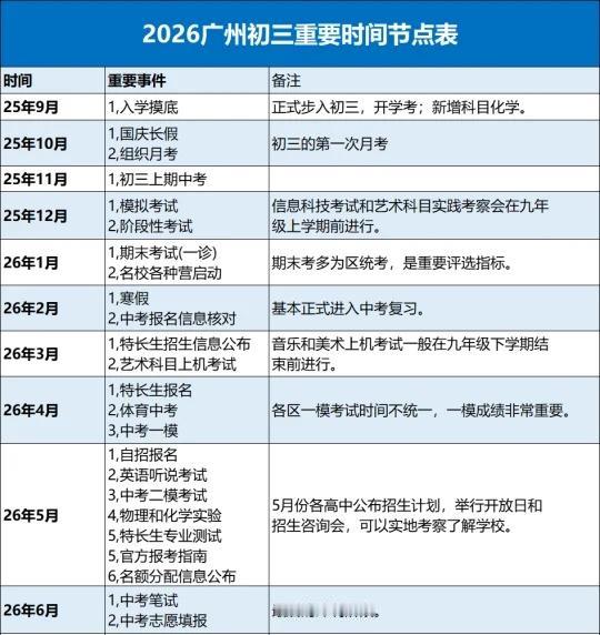 2026广州中考关键时间轴 广州初三家长&准初三宝子看过来!2026中考时