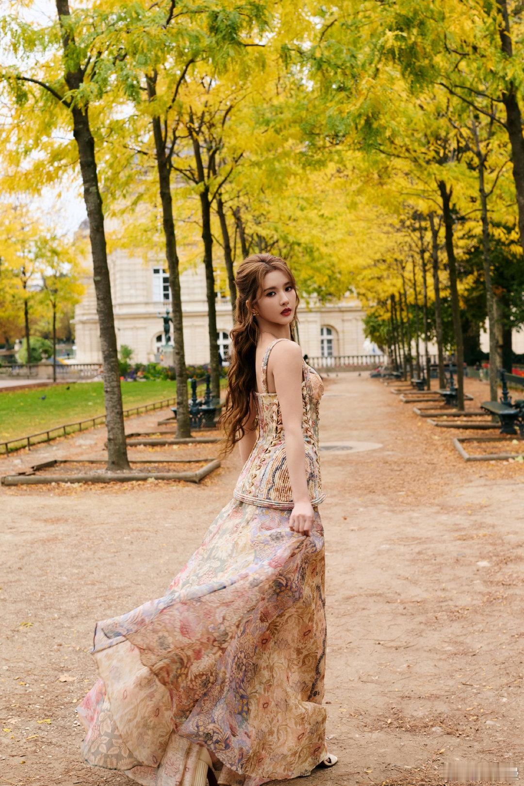 刘些宁秋日油画里走出的美人 太贴切了!复古长裙在秋风里飘起的瞬间,优雅得像自带滤镜,随意一坐就是画报质感,原来真的有人能把秋日巴黎穿成移动的油画!