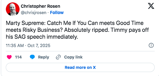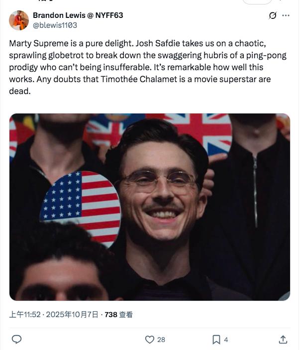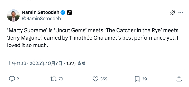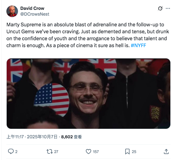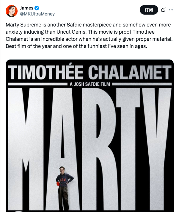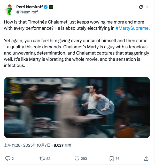 TNABO《至尊马蒂》首轮反馈:约书亚·萨弗迪生涯最佳导演之作,提莫西·查拉梅