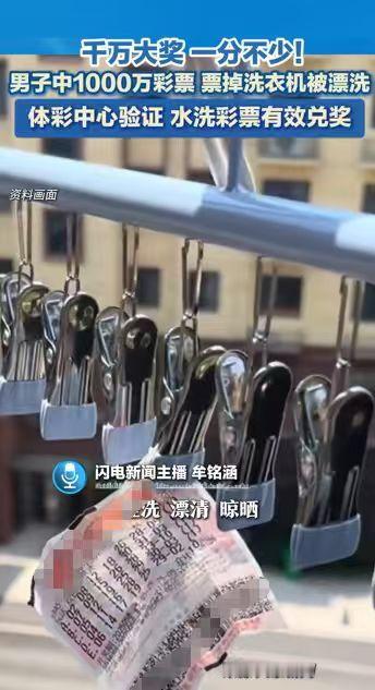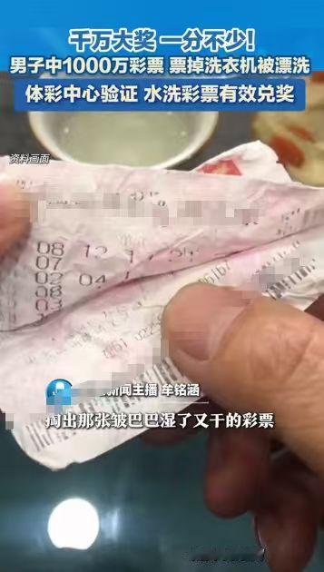 “这就是命啊!”2025年6月,云南丽江,一男子购彩中得头奖1000万元,谁知他不慎将揣着中奖彩票的衣服放进洗衣机漂洗,经过搓洗后彩票出现褶皱、褪色等情况,男子心急如焚赶紧带着彩票去兑奖,结果令人意外,网友:逆天运气差点被“洗”没了! 买彩票中大奖是多少人梦寐以求的事情,彩票头奖的巨额奖金足够让人躺平,可要是因为中奖彩票没有妥善保管,导致兑奖时出现什么差池,那估计得难受一辈子了。 一名男子购彩后将彩票揣进了上衣口袋里,回家后他就把这事给忘了,随手将上衣脱下丢进了洗衣机里,经过的漂洗、晾晒等一系列流程,衣服中的彩票已经被蹂躏的不成样子,男子却毫无察觉。 当期大乐透开奖后,大奖信息满天飞,男子发现自己购彩的彩票店拉起了横幅,这才想起自己还有张彩票在衣服兜里,他赶忙回家查看,自己确实中得了一等奖,但中奖彩票已经被水洗过,男子赶紧将彩票小心翼翼取出,展开晾晒。 水洗彩票到底能不能兑奖?男子抱着这个疑问,心里七上八下来到体彩中心兑奖,所幸这张彩票虽然经过水洗,但票面没有被破坏,号码以及条形码依旧清晰,他顺利带走了1000万元奖金。 不少网友表示男子的好运差点被洗衣机给“洗”没了,彩民们在购买彩票后一定要妥善保管,万一大奖砸到头上,彩票却出了问题,那后悔都来不及! 信息来源:《千万大奖 一分不少!男子中1000万彩票,票掉洗衣机被漂洗,体彩中心验证彩票有效。》闪电新闻