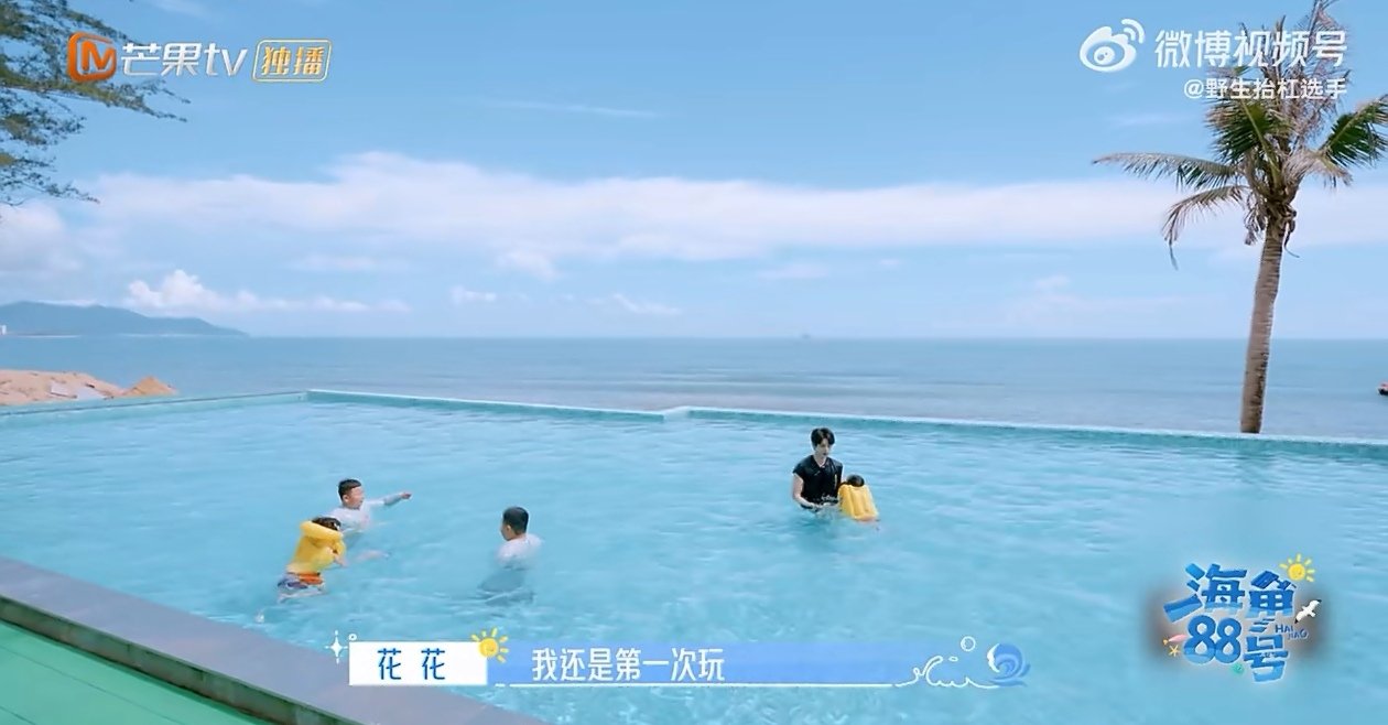 颜安这是录了爸爸去哪儿救命!颜安在民宿的泳池中,一会儿化身金牌游泳教练,教小朋