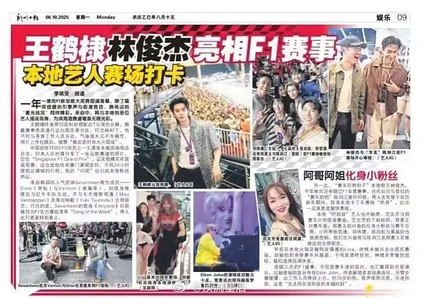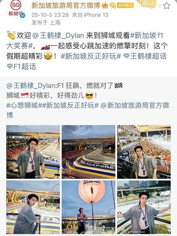 LV给品牌代言人王鹤棣的待遇好好,受新加坡政府主办方邀请前往新加坡F1观赛,新加