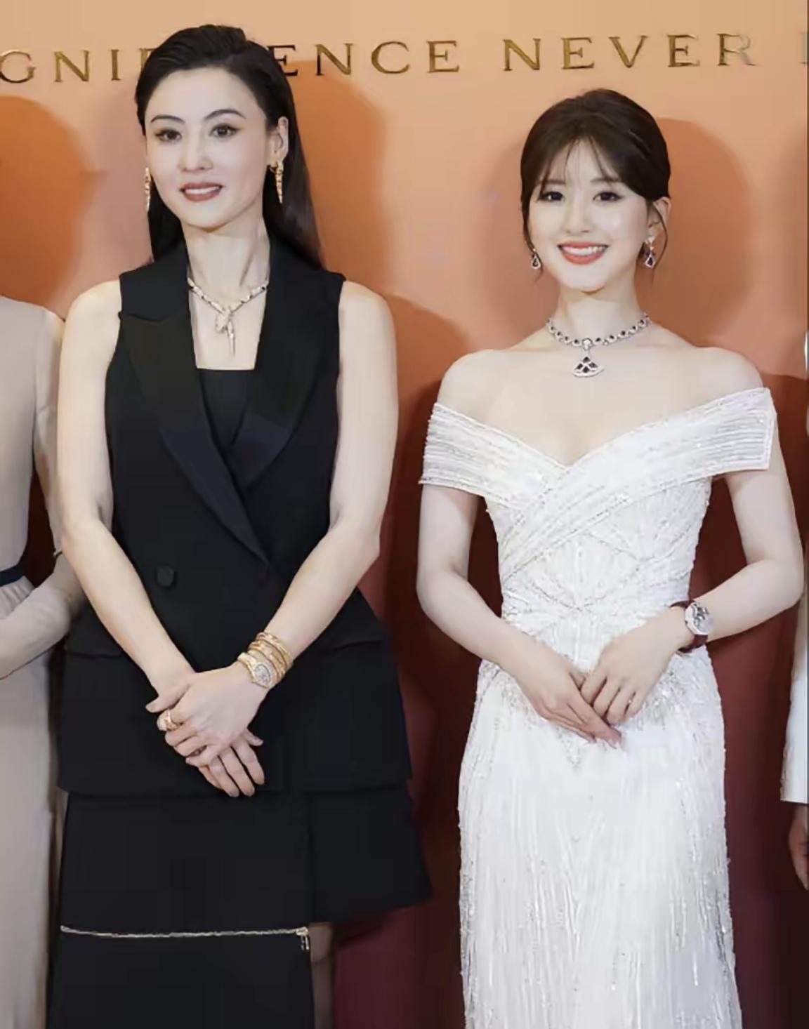 身高只有165cm的张柏芝站在毛晓彤身边像个巨人。 毛晓彤的身材单看没有问题,放