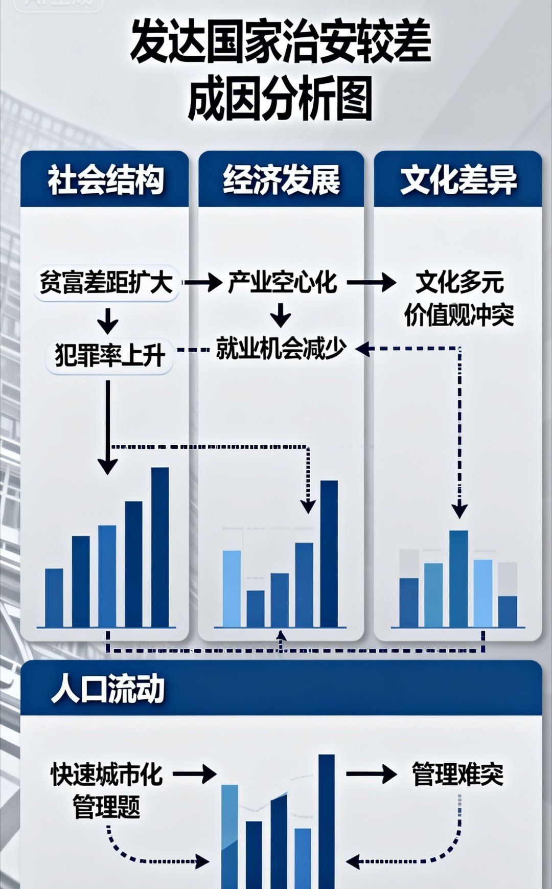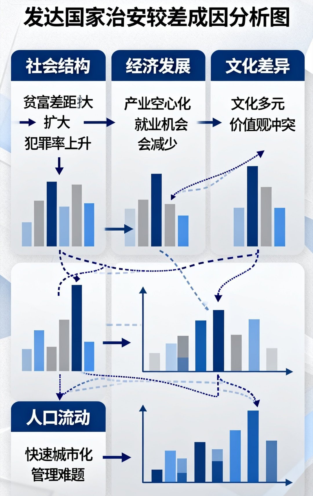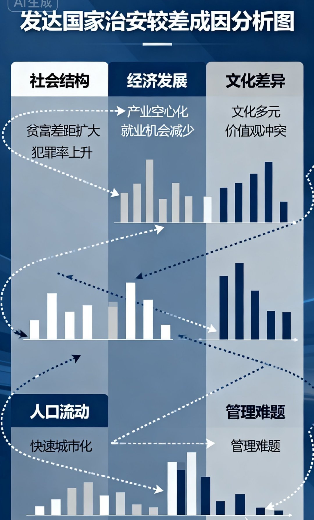 所以,当我们问“为什么发达国家的治安比较差”时,更准确的问法是:“为什么某些发达国家(如美、英)的治安问题比另一些(如日、韩)更突出?”