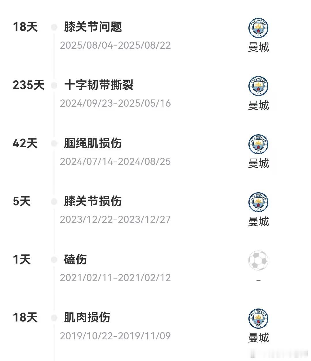 事实上,伤病在罗德里的职业生涯中原本并不常有,在2024年之前,罗德里仅仅遭遇三次小伤,累计伤缺时间还不足一个月。