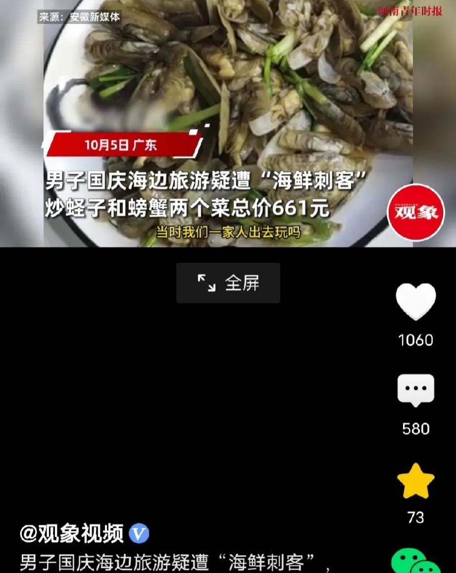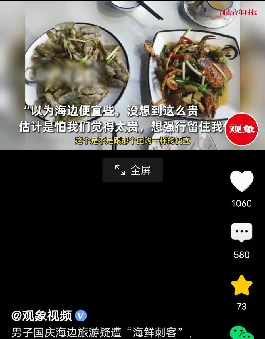 😡国庆吃俩菜被收661元!连云港老板:按市价!游客怒了:螃蟹是金子做的?