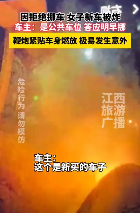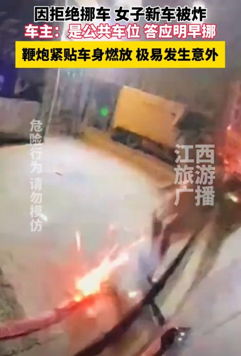 安徽合肥,女子夜间把车停在马路对面的路边上,期间接到了挪车电话,但女子并未理会。万万没想到,外面突然响起了鞭炮声,随后手机上就收到了汽车发来的紧急提醒。女子立即跑去查看车辆情况,发现刚提不久的新车上有多处被损毁,气得女子当场就报了警。目前,对方态度依旧豪横,不肯道歉、不同意赔偿,女子正打算走司法程序。 据江西旅游广播10月4日报道,桂女士的这辆车才买不久,平时十分爱惜。 10月3日晚上,桂女士开车回家时,发现家门口的路边都停满了车,她转了一圈都没找到车位,于是就把车停到了马路对面去了。 当晚10时许,桂女士突然接到一名陌生女子打来的挪车电话,对方要求桂女士把车挪走,声称这个位置是她的。 桂女士觉得莫名其妙,这个路边停车位明明是公共停车位,且都划了停车线,停车位上也没有车牌号,怎么会是私人的?再加上天色已晚,所以桂女士就说第二天再挪。 万万没想到,在挂掉电话后的20分钟左右,桂女士突然听到一连串的鞭炮声,随后手机上收到了紧急提醒,显示有人在她的车辆旁燃放鞭炮。 桂女士立即下楼赶往马路对面查看情况,发现有一名身穿连衣裙的女子在自己的车旁燃放鞭炮。 桂女士上前制止,可对方的态度却十分嚣张,称桂女士占了她的车位。桂女士坚称这是公共停车位,先到先得,但对方却坚称是自己的车位,随后便离开了。 无奈之下,桂女士选择了报警。警方经过调查后,将女子叫到了现场处理。可女子的态度仍然十分嚣张,不仅不道歉,甚至拒绝赔偿。 10月4日上午,桂女士先去给车辆去做了定损,显示是1000多元。 那这件事中到底该如何处理? 如果桂女士所停的位置是公共停车位,那女子就没有任何理由要求桂女士挪车,因为公共停车位遵循的是先到先得的原则。 而女子在桂女士拒绝挪车后,公然在桂女士的车辆旁燃放鞭炮,且已经对桂女士的车辆造成损害,所以该女子的行为符合故意毁坏财物。 按照刑事案件的立案标准,故意毁坏财物需要达到5000元以上才能立案追诉,所以女子的行为目前来说是不构成犯罪的。 不过,《治安管理处罚法》第49条规定,盗窃、诈骗、哄抢、抢夺、敲诈勒索或者故意损毁公私财物的,处5~10日拘留,可以并处500元以下罚款;情节较重的,处10~15日拘留,可以并处1000元以下罚款。 因此,对于女子的行为,还可以予以治安处罚。同时,女子给桂女士造成的损失,也应当予以赔偿。 有网友认为,女子肆意燃放烟花爆竹不仅给桂女士造成了损失,还存在污染环境和扰民行为。 其实根据《合肥市燃放烟花爆竹管理规定》,只要不是在严禁燃放烟花爆竹的地方放鞭炮,一般是不构成违法的。 但是该规定第12条第2项明确规定,在允许燃放烟花爆竹时间、区域,燃放烟花爆竹时,不得向烟花爆竹零售网点、行人、车辆、建筑物等燃放。 本事件中,女子就在桂女士的车旁燃放鞭炮,且存在报复心理,如果因为燃放鞭炮导致车辆被引燃,那后果不堪设想。 因此,作为行政主管部门,应当对女子予以500元的罚款。 那女子的行为是否构成放火罪? 放火罪是指故意使用明火引燃标的物,从而引发火灾,危害公共安全的行为。 女子的行为虽然不当,但其只是将鞭炮放在车辆侧面,且距离车辆有一定距离,不足以使得车辆燃烧。但如果女子是将鞭炮放在汽车底部,那就有可能构成放火罪。 最后,城市路边的公共停车位是当地政 府机关为了市民有车可停而设置的,具有一定的公共属性,所以不是谁一直停在一个车位,这个车位就属于这位市民的,应当遵循先到先得原则。 对于这名女子的行为,您有什么看法?欢迎留言交流。