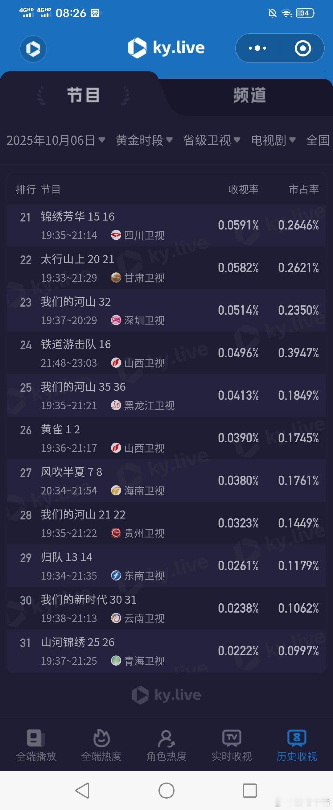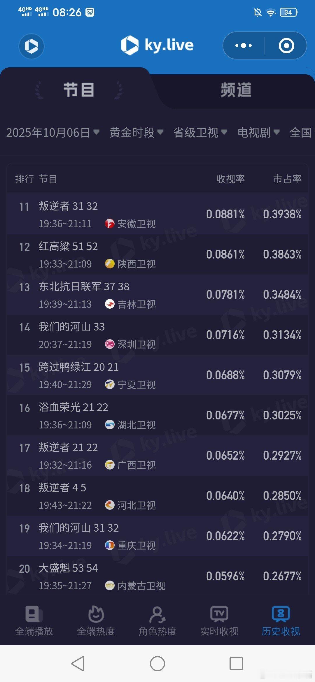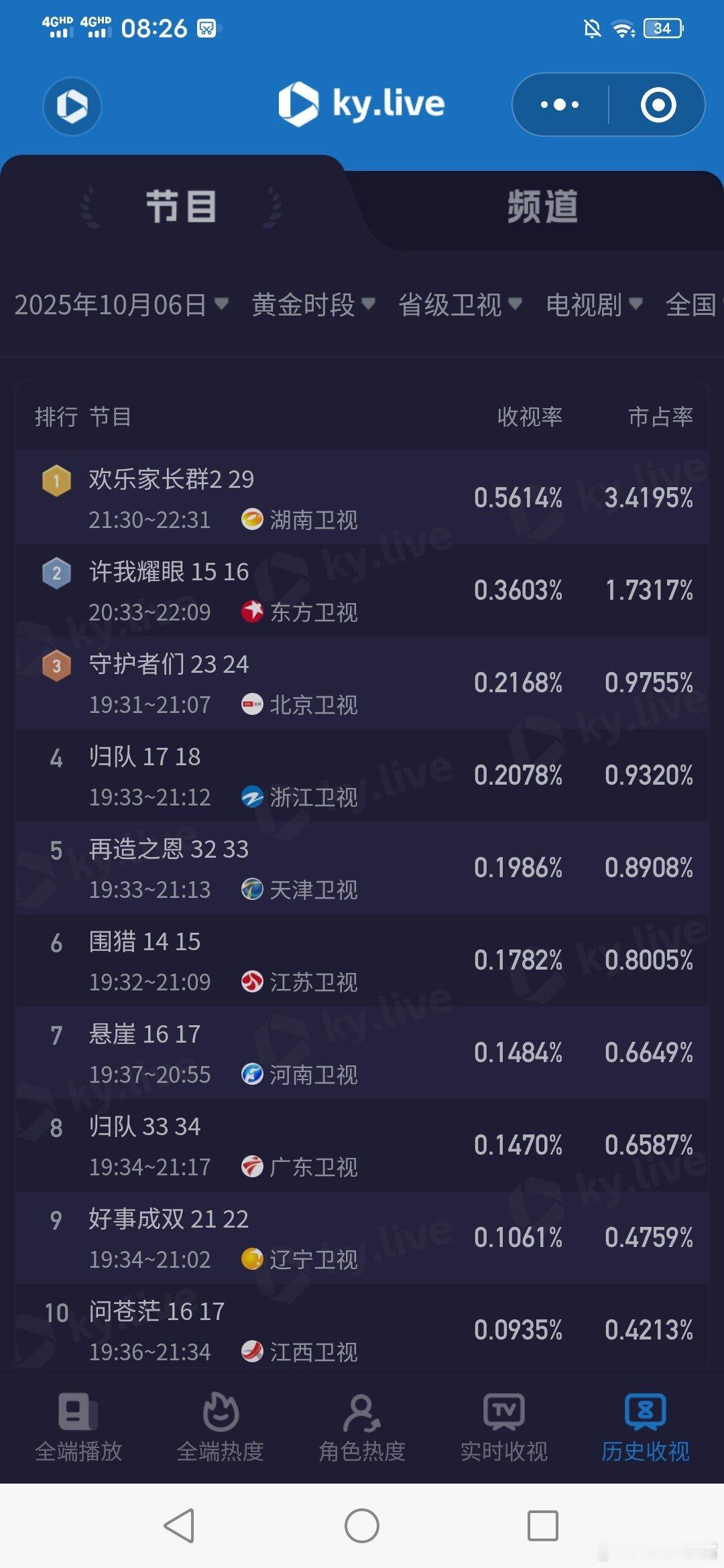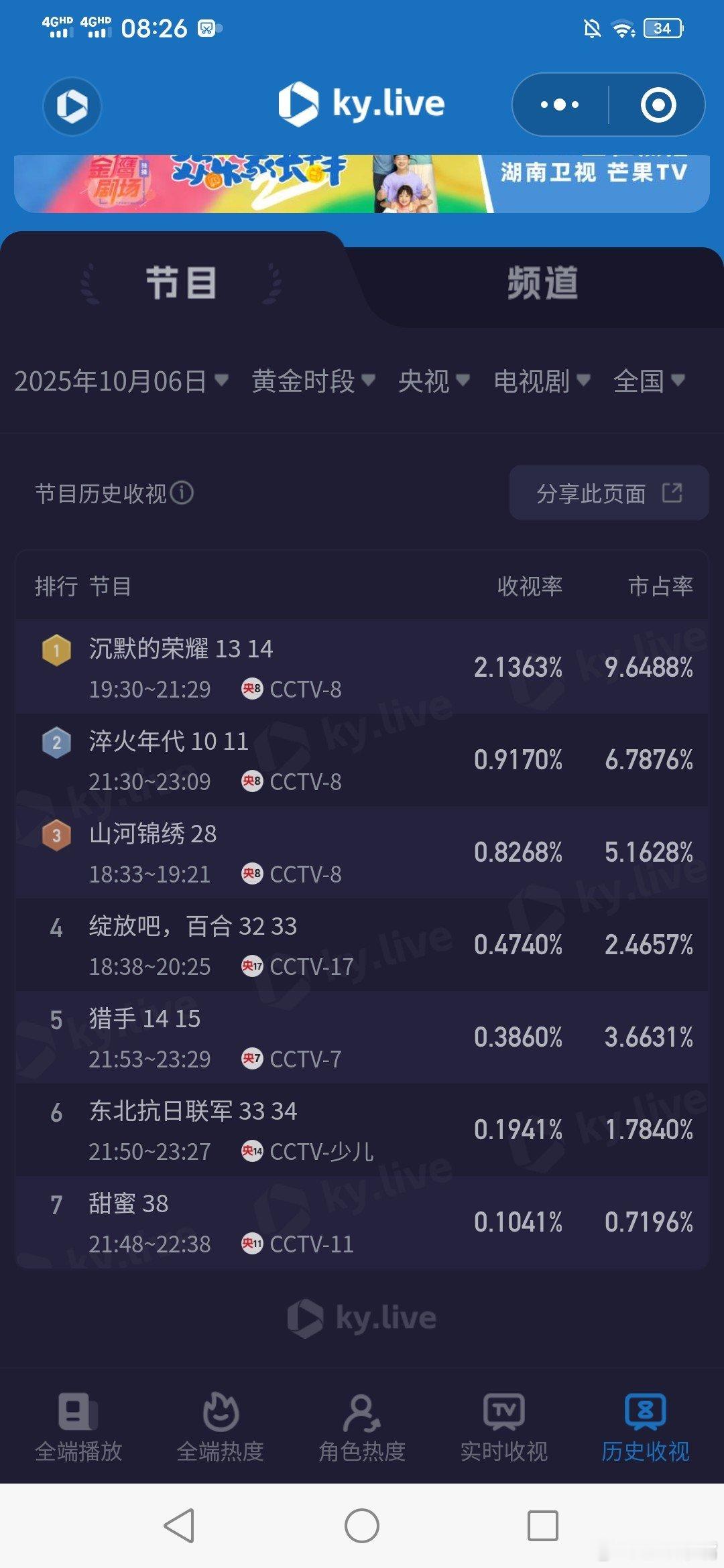 沉默的荣耀 10月6日中秋节cvb收视日报