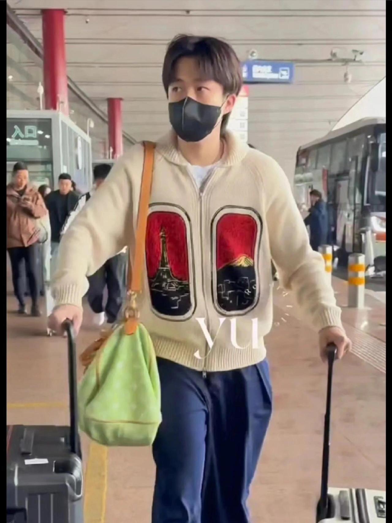 王楚钦出发了,一切顺利,启程印度! 一身清爽,有活力感的毛衣,小背包真漂亮,大头