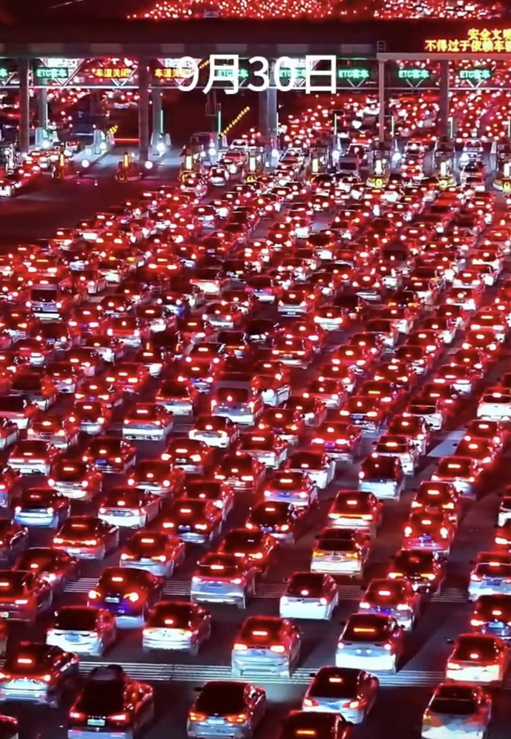 中国最大收费站亮起返程星河36车道挤满返程大军 中秋节已过国庆假期返程