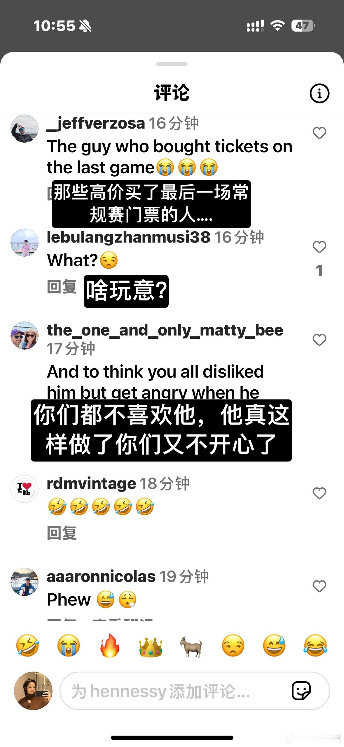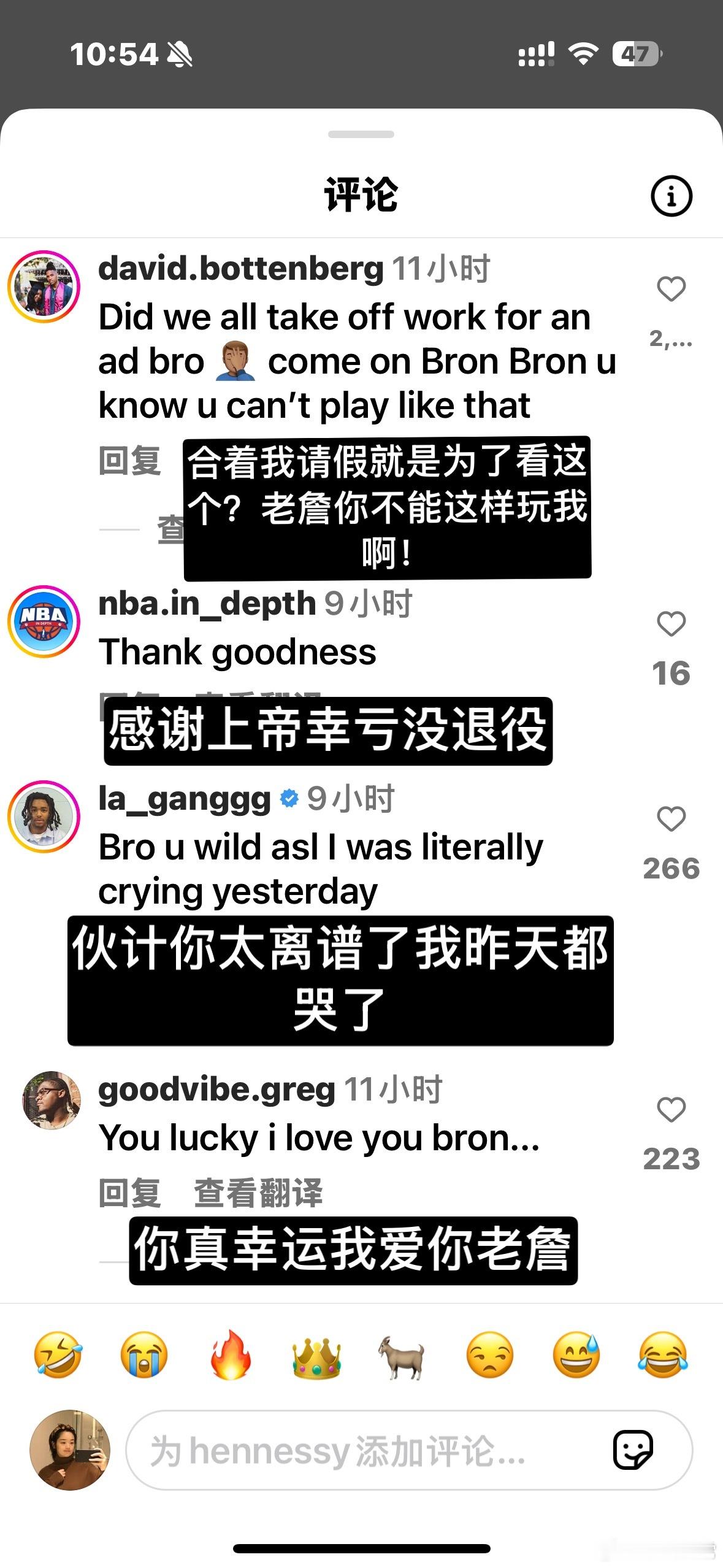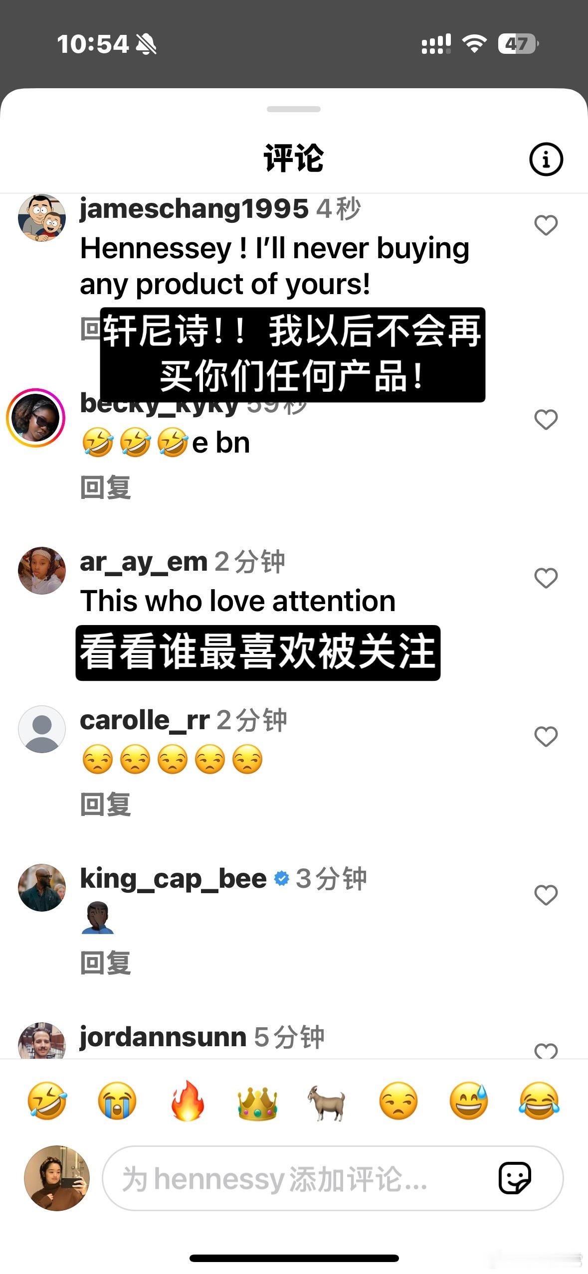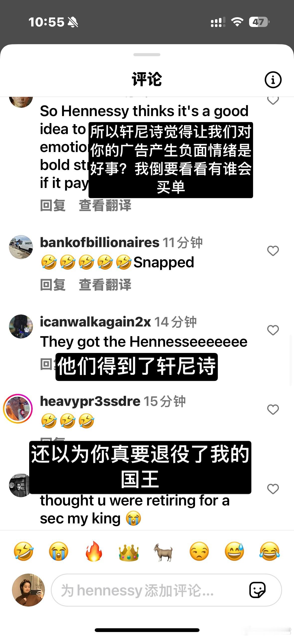 这是詹姆斯本人的账号下,大家对詹姆斯决定二广告的反应…可以说轩尼诗这次大翻车,没