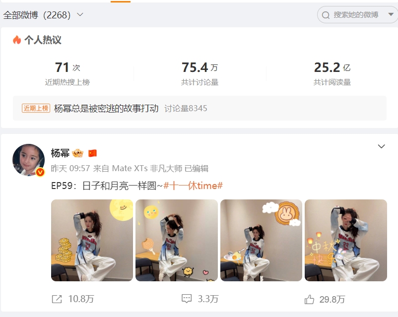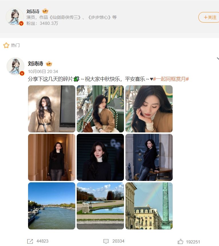 一般情况下,十月一或者中秋节这种节日,艺人都有任务博,赵丽颖这个月开始取消了行程图,连节日的任务博也取消了,其他几位85花都发了,只有她没发,她现在是真的不太想做数据,维持流量了。