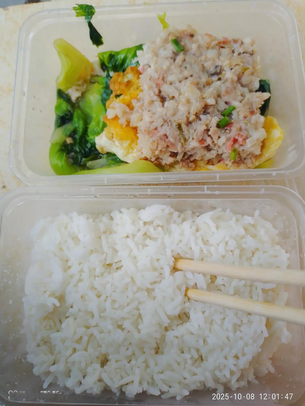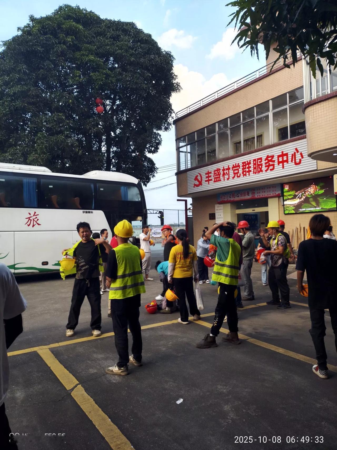 2025.10.08,今天继续到江门做日结,早上5点10分就起床了,5.30从中山黄圃骑自行车,早上5点50左右到达中山南头劳务中介处,等候安排上车,6点5分左右从南头出发,前往江门,今天从南头出发,还是一百多人吧,今天在江门江海区丰盛村,我们来了一车人,50个人吧,早上6点40左右就到达了丰盛村,然后签名,等候安排干活 ,8点左右开始干活,今天我们是20个人,由当地工作人员带队,去到村子里,帮助清理杂物,搬出来然后装车运走,在江门做了很多天了,这个村子是比较整洁的环境也比较好,河水也是比较清澈,不像别的地方,河水都是臭的黑的,这个村,道路也宽敞,村委这边公园也很大,环境不错。 中午12点左右吃饭,今天的盒饭饭菜是,一块肉饼,一个煎鸡蛋,一些生菜,一盒米饭,也算不错吧。但是对于有钱人,这样的饭菜是比较难吃的吧,今天吃饭的时候,一百多人都在一起领饭,还是有点乱。