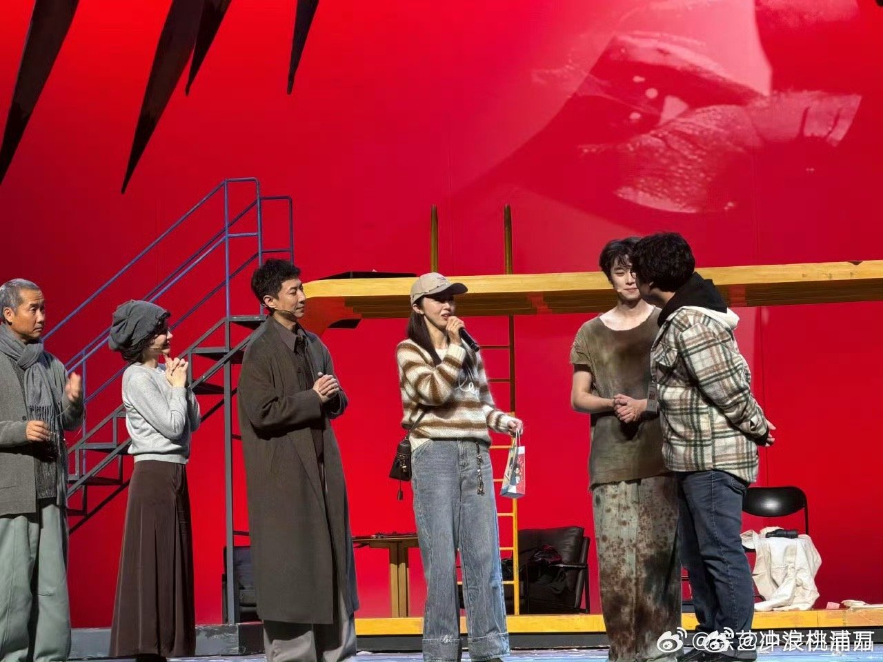 董璇张维伊北大合体董璇现身老公话剧现场站台,表示张维伊每一场话剧都有认真在看,每