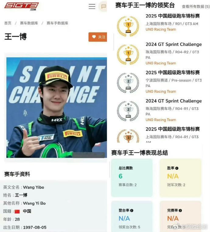 王一博真的是内娱传奇人物,在影视圈实际非常的强,此外在赛车圈的成绩也可以这么牛,