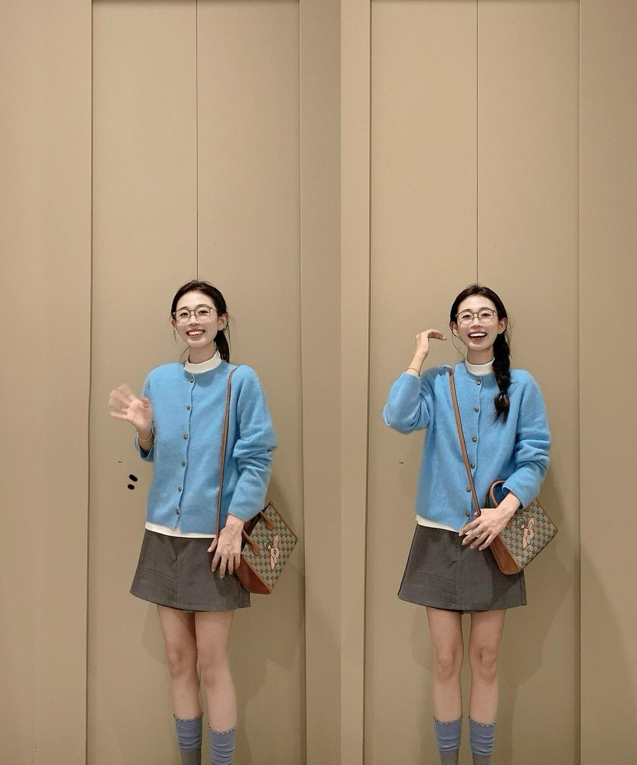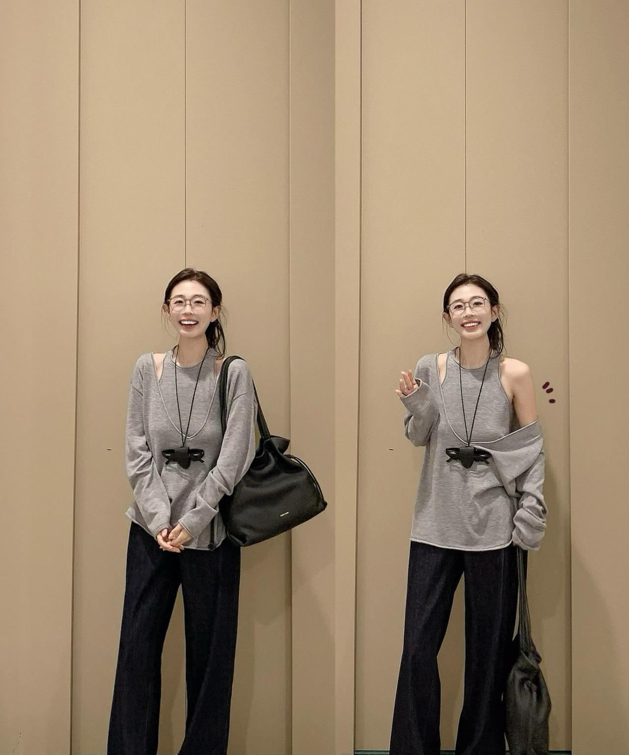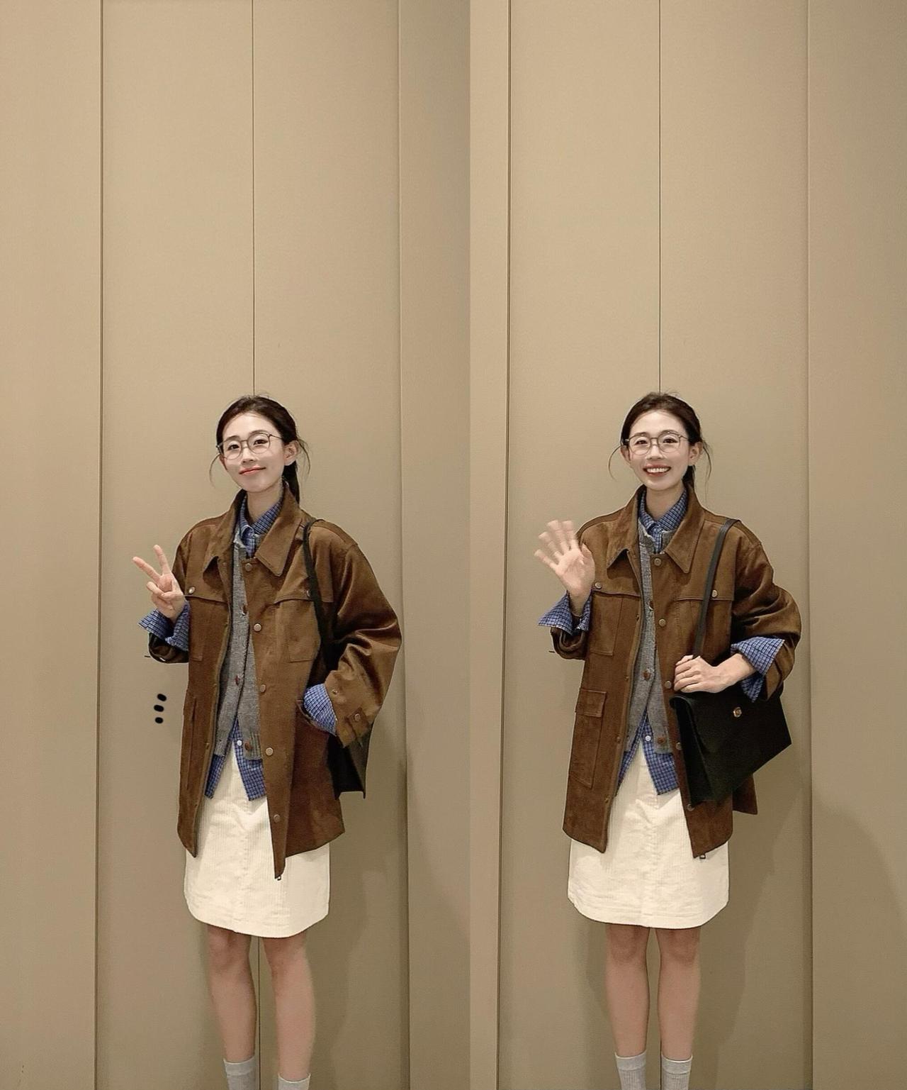 3套超好看的秋季look,跟着小姐姐轻松拿捏秋季时尚! 咖色的麂皮绒外套叠穿格子衬衫,中间是一件灰色的针织马甲,再加上一条浅色的短裙,充满秋日复古学院感的look,显高又时髦,非常适合小个子。浅蓝色搭配灰色意外好看,这里用白色的T恤作为打底,可以提亮造型,再加上蓝色的中筒袜呼应上衣,很有学院感俏皮又减龄。 还有灰色的假两件上衣,宽松的版型很有包容性,搭配一条黑色的阔腿拖地裤,慵懒松弛!