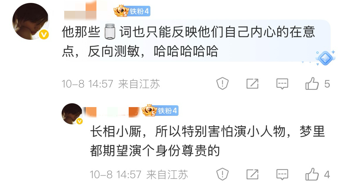 这两条点醒我了,为什么会出现这么可笑的控评词,觉得饰演返乡为百姓治疗疾病纾解痛苦的天才医生,会比不上会羡慕封建时代的太子角色,根本原因还是粉圈乃至演员本人内心的自卑,提到小人物就应激,需要角色的身份地位为演员本人赋魅,觉得演了太子自己也跟着高贵起来,可是历来只有写不出高贵的人格灵魂才会堆砌身份地位的设定,为人民发声,以人民作为主体的现实主义题材,永远是最牛的,因为人民才是历史的创造者,她们所嘲笑的刘老根也好马大帅也罢,是反应东北人民生活和厚重土地情感牵绊的现象级大爆作品(就像评论里说的,类似凤凰男羞于说自己来自农村,到哪里都要先强调自己是“城里人”,自卑敏感又亢奋)