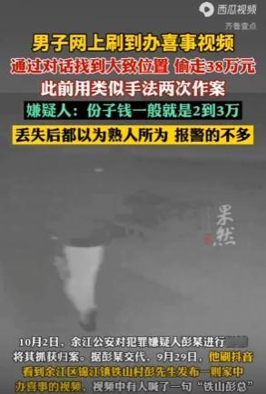 “这下后悔了吧!”2025年10月,江西鹰潭,一男子在社交平台晒出自己结婚收到的38万礼钱,谁知第二天这些钱就不翼而飞,他怀疑是熟人盗窃,谁知贼被抓后令人意想不到,网友:财不外露还是有道理的! 俗话说露财招贼,显富招祸,手里有钱时千万不要到处炫耀,一旦被贼盯上了,这些钱财很有可能就变成了他们的囊中之物。 一男子结婚时收了不少份子钱,老婆的陪嫁也很丰厚,由于他办婚礼需要采买不少东西,父母还准备了不少现金,这些钱连同礼钱共有38万,被存放在一个箱子里。 春风得意的男子用手机拍摄了办喜事的视频发到社交平台上,视频中大量的钞票十分扎眼,周围的亲朋好友一片贺喜声。 谁知,第二天38万元现金连同装钱的箱子全都不翼而飞,男子赶忙报了警,因为钱存放的位置特殊,家人都怀疑是熟人作案。 警方经过一系列调查锁定了犯罪嫌疑人,令所有人没想到的是,小偷和男子家毫无关系,还是个惯犯,他沉迷赌博欠下巨额债务,在偶然刷抖音时对别人的份子钱打起了歪心思。 得手两次后小偷的胆子也大了起来,看到男子晒出的现金他红了眼,他通过男子发布在社交媒体的视频,锁定礼金的位置进行盗窃。 男子很后悔在社交平台“炫富”,还好这次钱是找回来了,财不外露还是有一定的道理,手中的现金一定要保管好,被贼盯上那可就要麻烦了! 信息来源:《男子网上刷到有人晒份子钱、陪嫁,通过对话找到大致位置偷走38万元,失主曾考虑是熟人作案》环球网