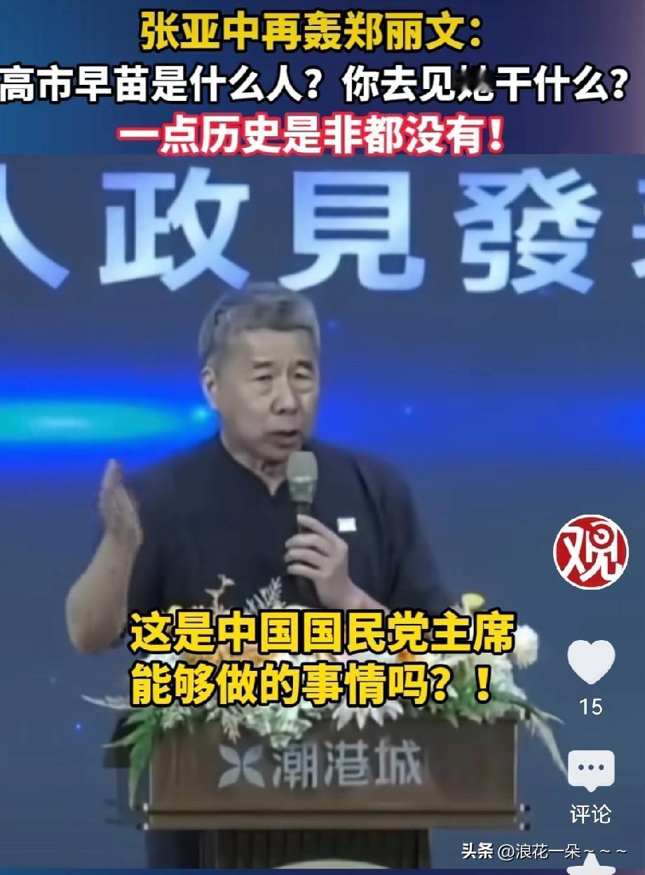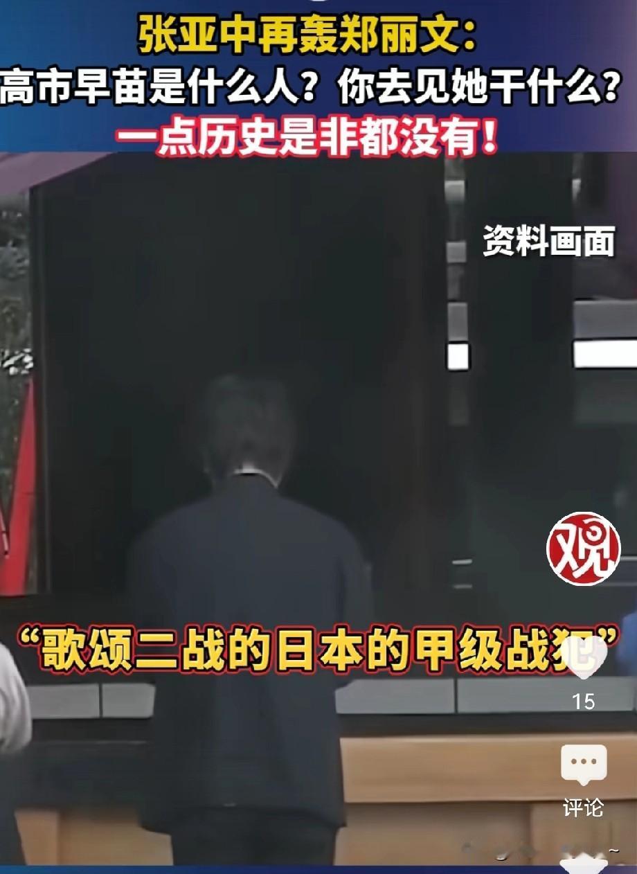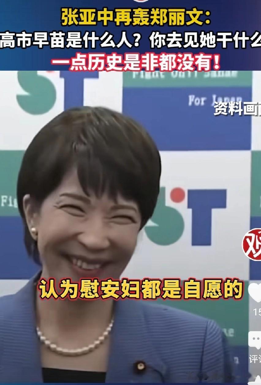 火力全开! 张亚中继续炮轰郑丽文,认为她不应该当选后去见高市早苗,高市早苗就是一个否定历史的人,做为国民党主席,你去见她干什么?一点历史是非都没有… 一点看法:不得不说,就凭这一点也要为张亚中点个赞。别看现在郑丽文有点优势,好多国民党大佬都在支持她,企图模仿韩国瑜去日本。即使她当选了,就凭她这一个想,说出来都会伤害民族感情,还别说去做了,那后果将是非常严重的,只要见了高市早苗,跟用针扎两岸老百姓的心有什么区别?