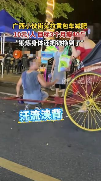 “人怎么能这么聪明!”2025年9月,广西北海,一男子在街头拉黄包车载客,收费每人10元,在锻炼身体的同时还把钱给挣了,他给自己定下目标3个月瘦40斤,网友:这比去健身房还好! 不少人为了减肥,选择花大把钱去健身房挥洒汗水,如果有一样“运动”能在减肥的同时顺便把钱挣了,你会选择去做吗? 一名男子觉得自己有些胖,想要减肥却又怕没有坚持下去的动力,他绞尽脑汁想到了一条“妙计”,那就是去拉黄包车! 黄包车需要靠人带动,拉车的过程中需要负重不断奔跑,十分辛苦,这就要求车夫的体力和耐力必须好,长时间跑车消耗大量热量,理论上来说确实能减肥。 男子给自己定下3个月瘦40斤的目标,随后购入了一辆黄包车在繁华街头接客,定价十元一人,路人看到黄包车觉得很新奇,都想体验一把,男子的生意十分红火,收入可观。 拉车时,男子的汗水常会将身上的马褂打湿,但他毫不在乎,依旧不知疲倦地奔跑,热情服务好每一位客人。 不少网友认为男子这个创意很聪明,拉黄包车可以说是一举两得,肥也减了钱也赚了,有些人还表达了效仿的想法,确实,这样一比较,感觉去健身房都有点浪费钱了! 信息来源:《小伙街头拉黄包车,挣钱的同时还减肥了》浙江省总工会