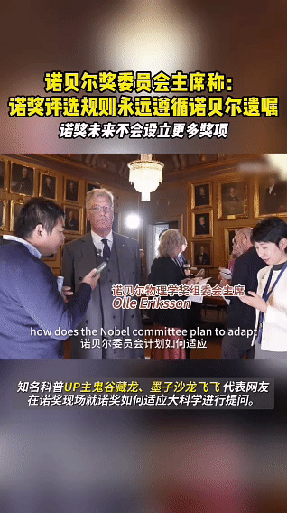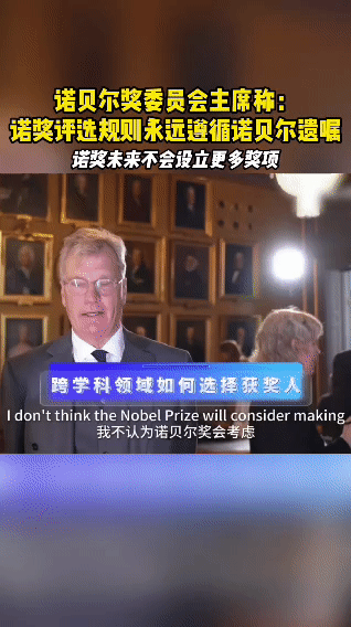 诺奖评选规则永远遵循诺贝尔遗嘱面对网友对跨学科研究获奖的疑问,诺奖主席回应:诺奖不会设立新奖项,但鼓励学科边界的创新。去年的奖项就是最好的证明。