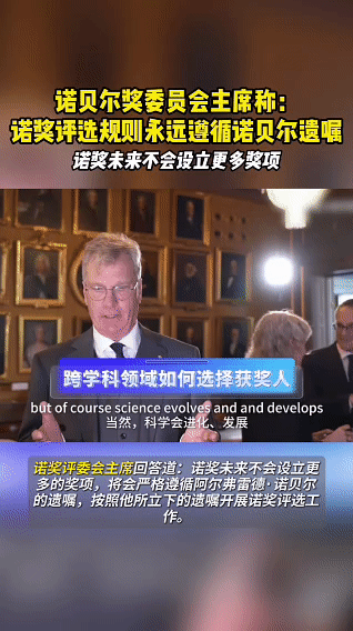诺奖评选规则永远遵循诺贝尔遗嘱 科学没有边界,奖项只是路标。在学科交叉处,藏着最激动人心的发现。真正的突破从不囿于标签,而在于我们如何理解世界。这份坚守初心,或许正是对科学精神最好的致敬。诺奖未来不会设立更多奖项