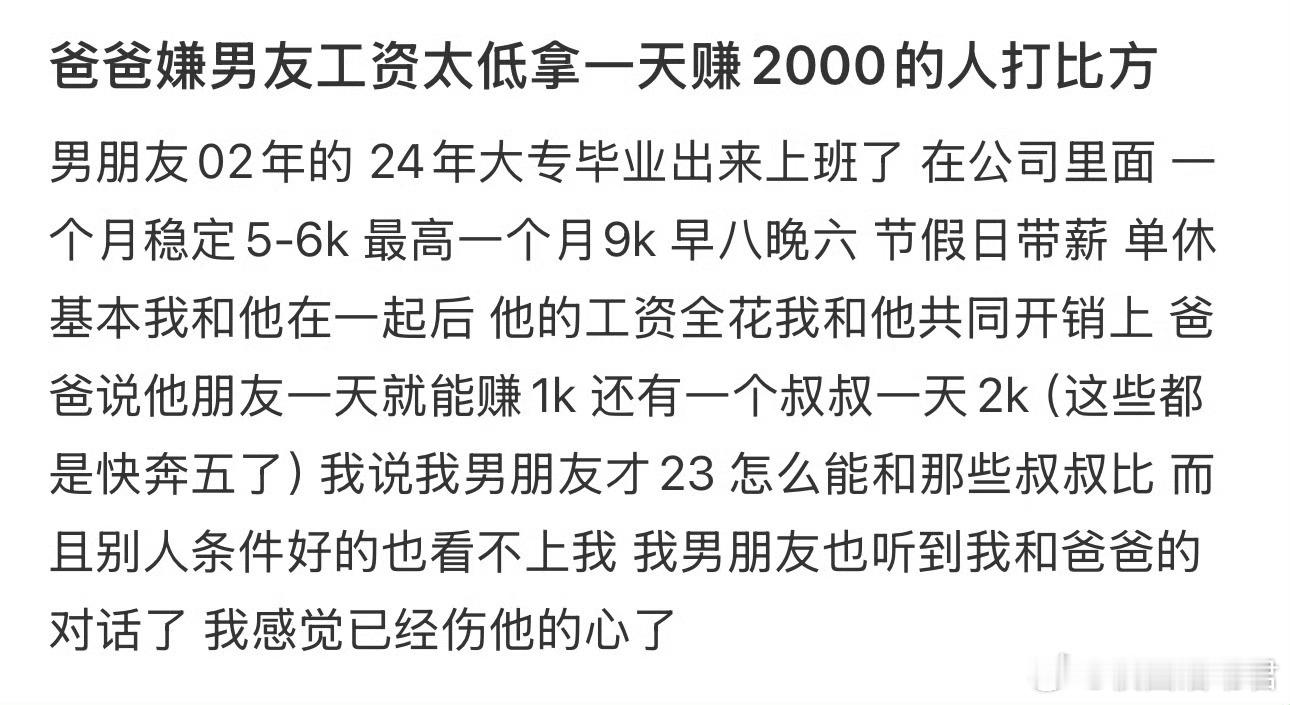 爸爸嫌男友工资太低拿一天赚2000的人打比方