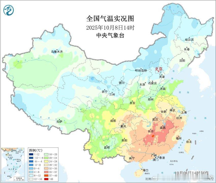 【南北气温差异大】今天东北华北在冷空气和阴雨影响下,普遍降温6-14℃,河北北部局地降温超15℃。北京今天气温倒降,凌晨3时还有19.7℃,14时45分只剩10.2℃,体感不到10℃,如同快进到了立冬。相反,今天下午湖南江西等地继续高温,湖南衡南、攸县气温超37℃,体感超42℃,如同穿越回了大暑。