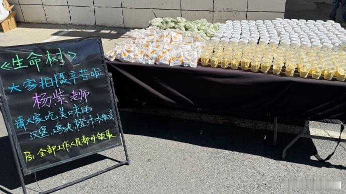 杨紫请《生命树》剧组吃汉堡与饮料🥤,真好啊!期待早日杀青[威武][努力]