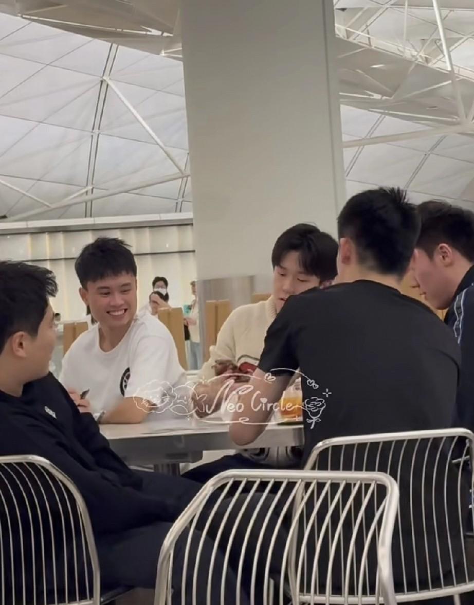 国乒队在香港转机去印度,莎莎小分队在快乐的吃吃吃~,看到翔哥在,好安心呢! 楚钦