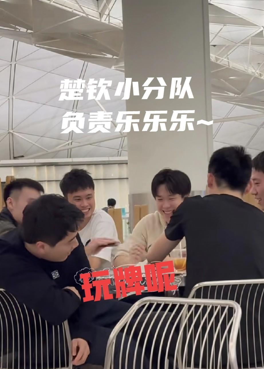 国乒队在香港转机去印度,莎莎小分队在快乐的吃吃吃~,看到翔哥在,好安心呢! 楚钦小分队像是搞团建,秒变牌友,好开心的感觉!大胖七号都笑开花了!!大胖的位置还能把小温的牌背下来给对面头哥当话筒了![大笑][大笑] 看到有些网友喊话莎莎也赶紧来开一桌,真是吃瓜群众不怕事大![捂脸][捂脸] 希望国乒队亚锦赛一切顺利!健康平安完赛!