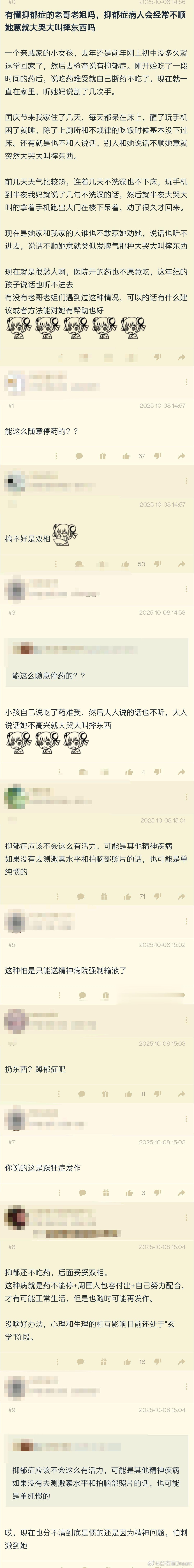 有懂抑郁症的老哥老姐吗,抑郁症病人会经常不顺她意就大哭大叫摔东西吗?
