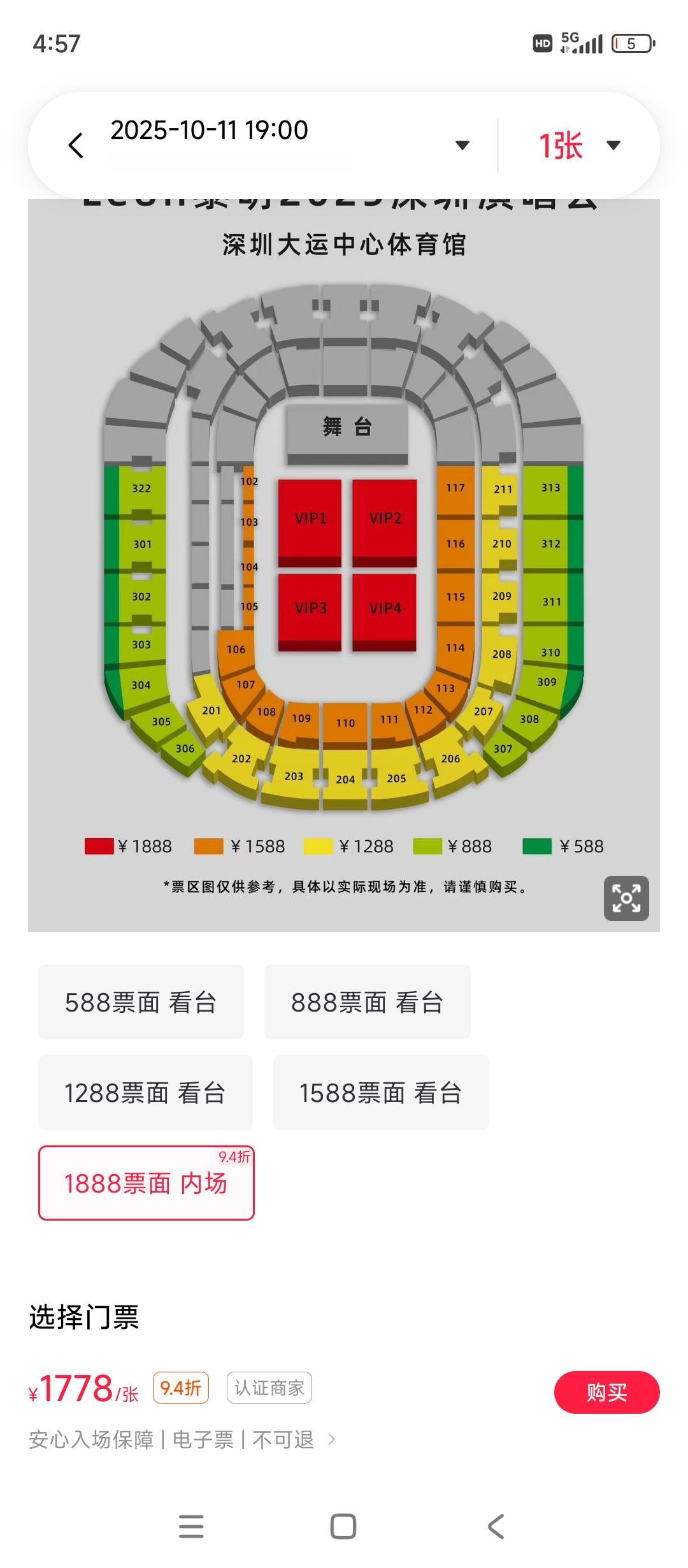 黎明好不容易今年出粤港澳开个几场演唱会 可惜摩天轮上还是没有卖完 猫眼,大麦两家一级代理商不会降价 但是流通到摩天轮,淘宝,闲鱼等二级,三级票贩子手上的门票就是随意了