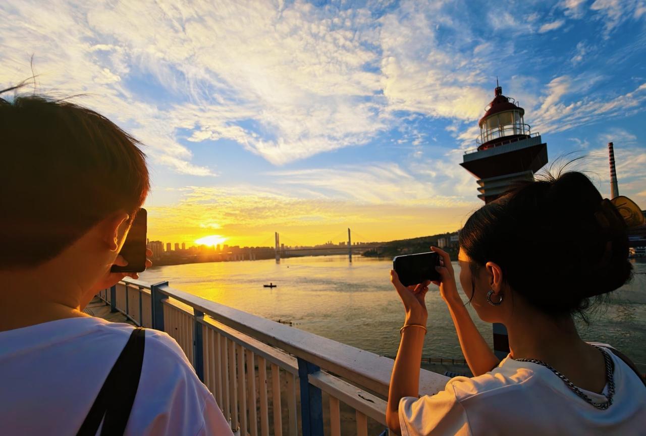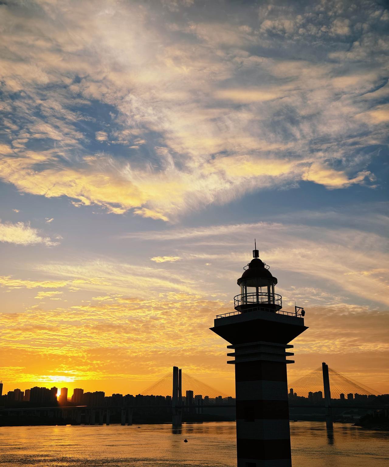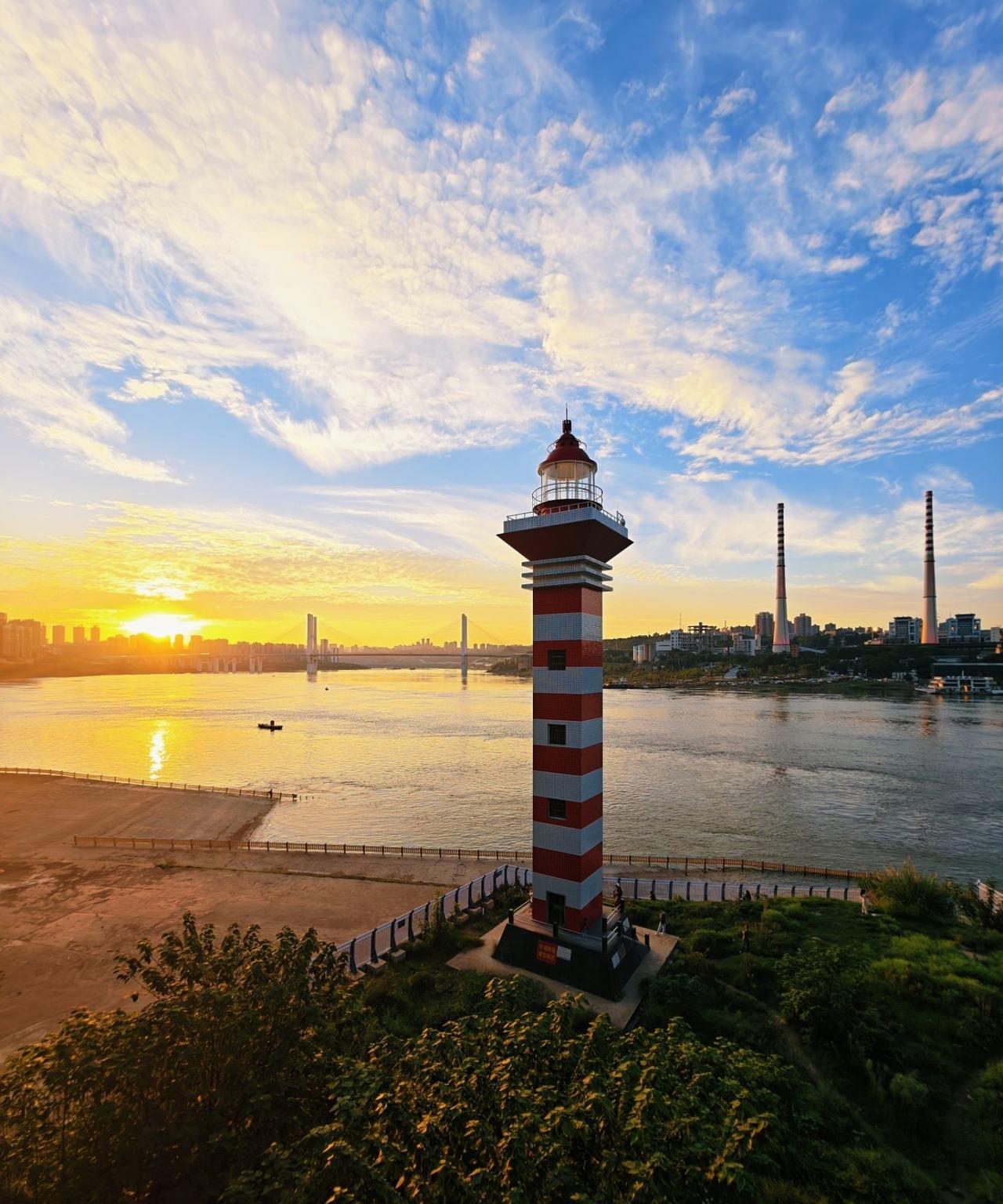 10月8日傍晚,重庆李家沱码头的日落,太浪漫啦!真没想到,今天的日出日落都很美好啊!今天的晚霞,李家沱长江灯塔,重庆美术公园的大烟筒,浪漫极了! 2025年国庆节,划上完美的句号! 太令人感动啦! vivo X 200 Ultra手机摄影,原图。#光线摄影世界曾兰谈天说地#