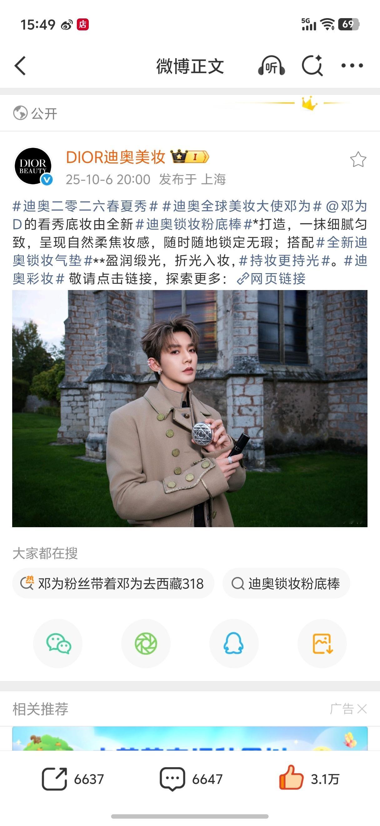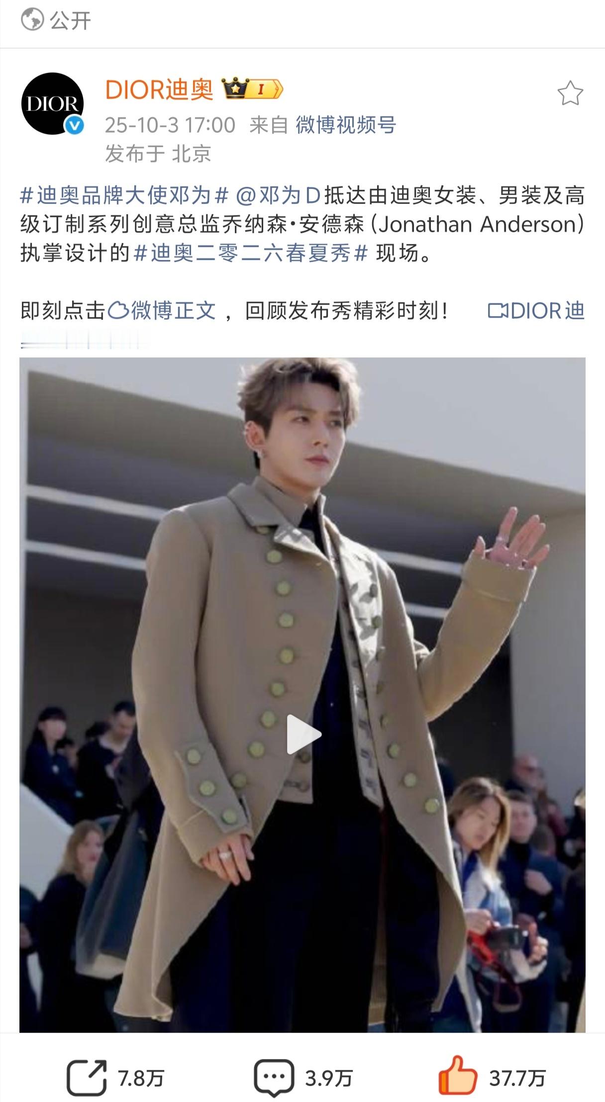 邓为巴黎时装周 ·迪奥品牌大使邓为 ·迪奥全球美妆大使邓为