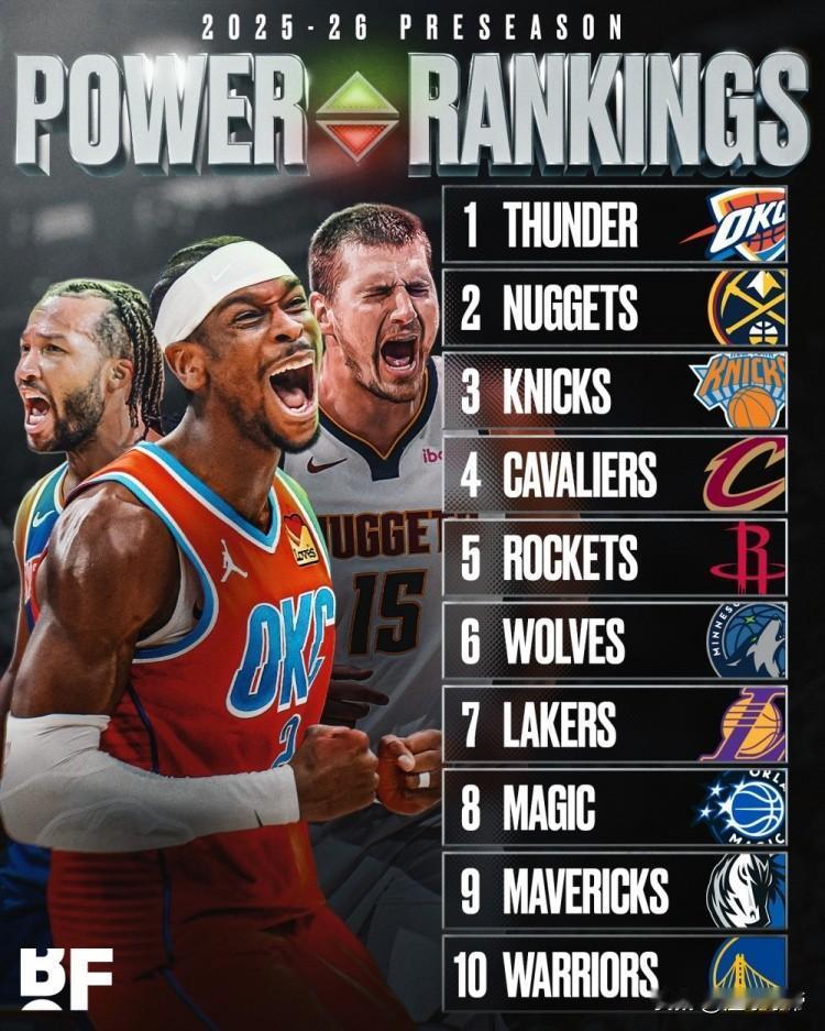 一个范乔丹,让火箭的实力倒退了5名! 近日,美国权威篮球媒体机构评选出了新赛季球队实力排行榜,本来排名第一的火箭由于范乔丹突然受伤,排名下滑至第五了,而卫冕冠军雷霆则升到了第一,掘金排名第二,尼克斯排名第三,骑士排名第四。 东契奇+詹姆斯的湖人则排到了第七,三状元的独行侠被相当看好排名第九,勇士则不被看好只排名第十。 不得不说一个范乔丹影响实在太大了,让火箭从夺冠球队变成了争冠球队,詹姆斯好的库里则想要拿到第五冠太难了,联盟其他球队根本不给机会了。
