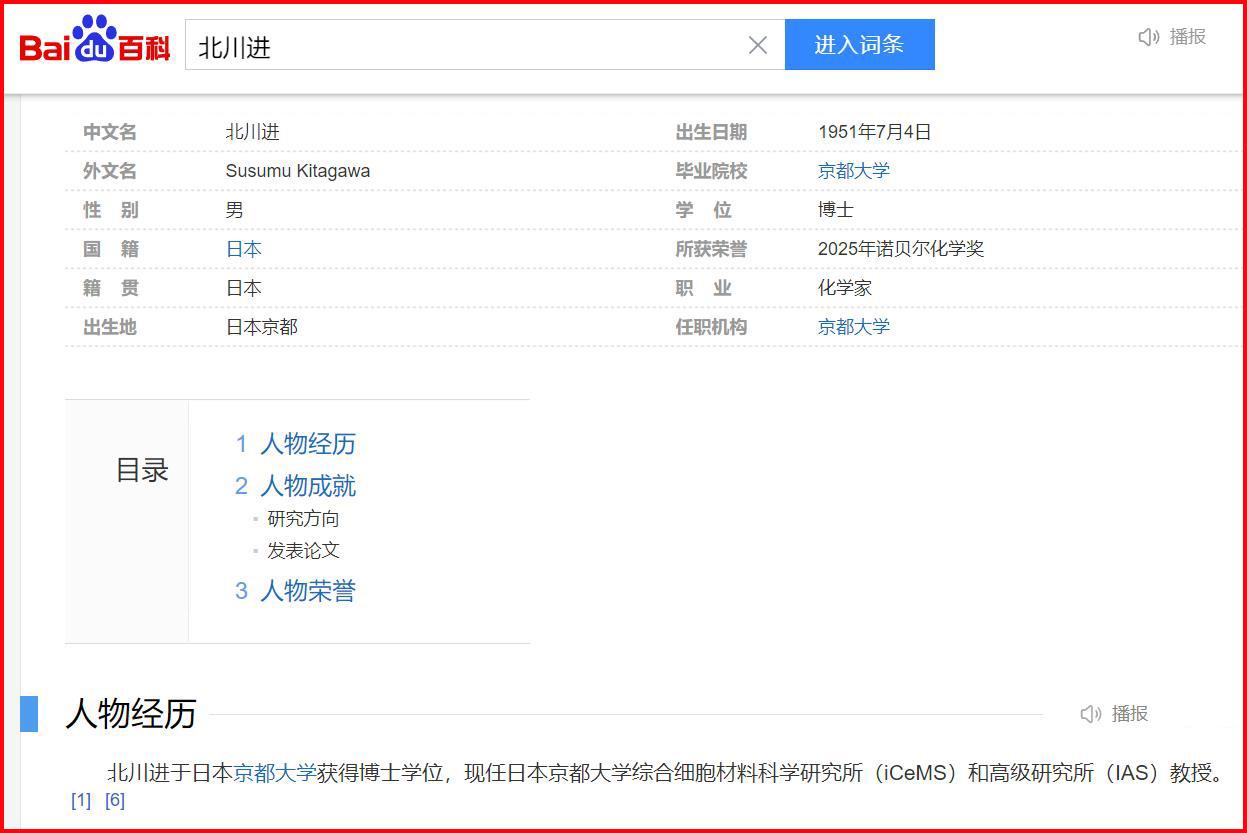 前天是坂口志文获奖,今天是北川进获奖,这可是非常权威的诺贝尔奖的自然科学类奖项,