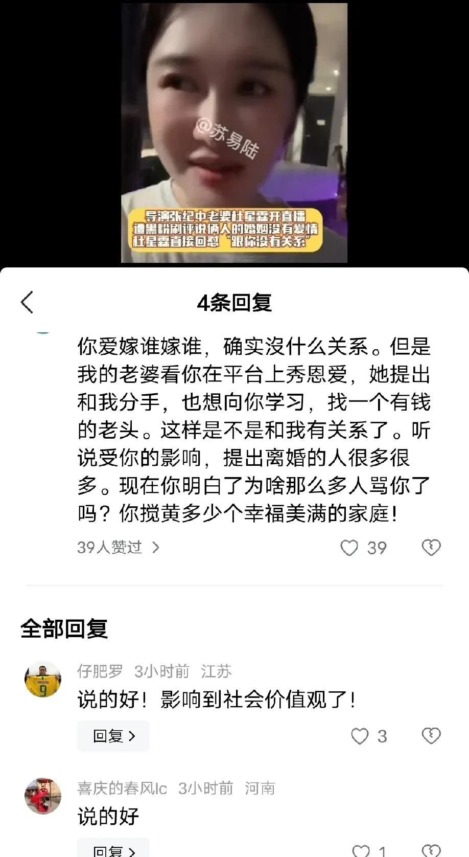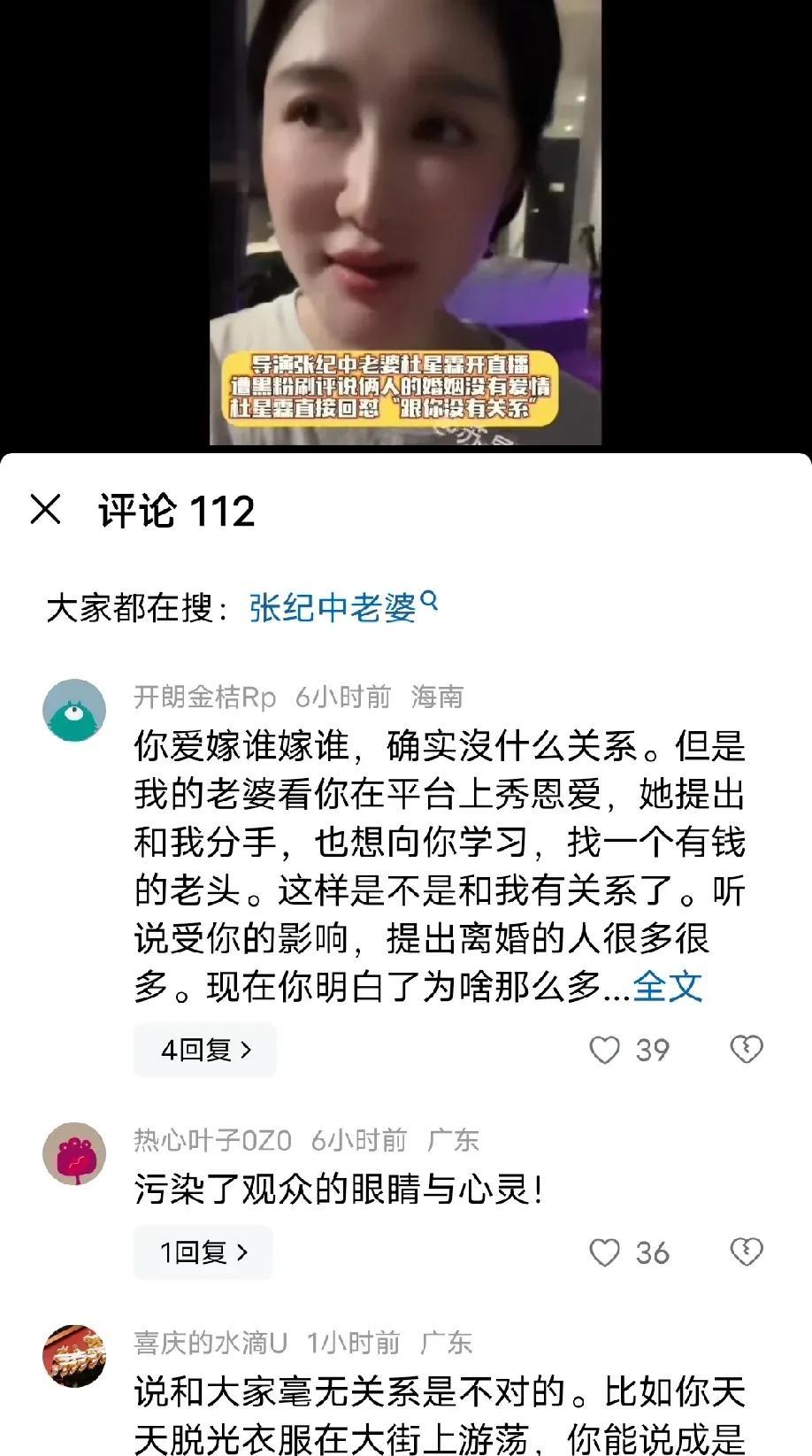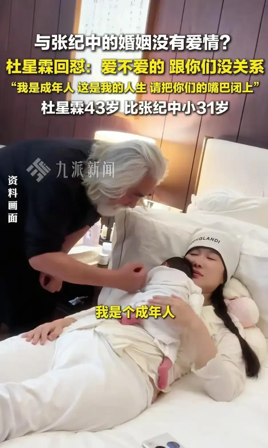 爱不爱的和网友没关系?!张纪中老婆杜星霖这样说就不太对了! 因为看到有网友评论说