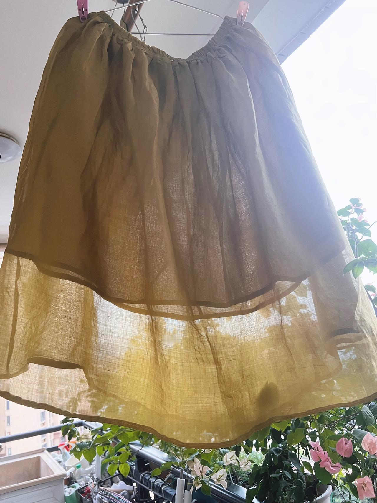 今年8月底我买了台缝纫机,给自己找着个新的兴趣爱好,有空就买点布,慢慢琢磨着做衣服,挺好。 前阵子先摸着手做了三套睡衣(长袖一套、短袖两套),国庆这几天天热没出门,在家接着练手玩,又试着做了三件:一件小衫、一条苎麻半裙,还有条新睡裤。 就说那条苎麻半裙,昨天裁布、今天慢慢踩缝纫机缝完,加内衬时虽遇着点小细节得留意,不过正好当积累经验了。而且苎麻料是真透气,晚上穿去散步,风一吹特舒服。 就享受把布料顺着想法走,用缝纫机慢慢车成样子的过程,每种款式都试着做做,慢慢玩、慢慢上手,这才是最惬意的。