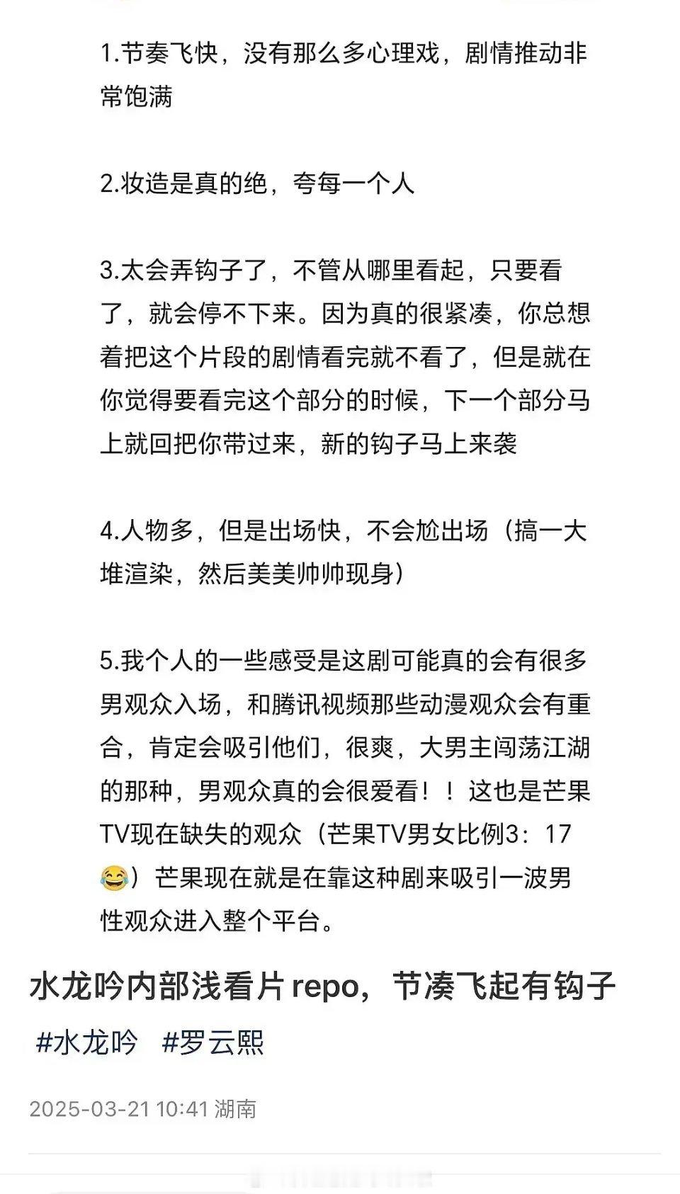 罗云熙《水龙吟》repo,大男主戏份超级多,和女主男配都好磕,人物超级多,一直打打打,制作精良,这剧传说10月28日播,值得看好吗?