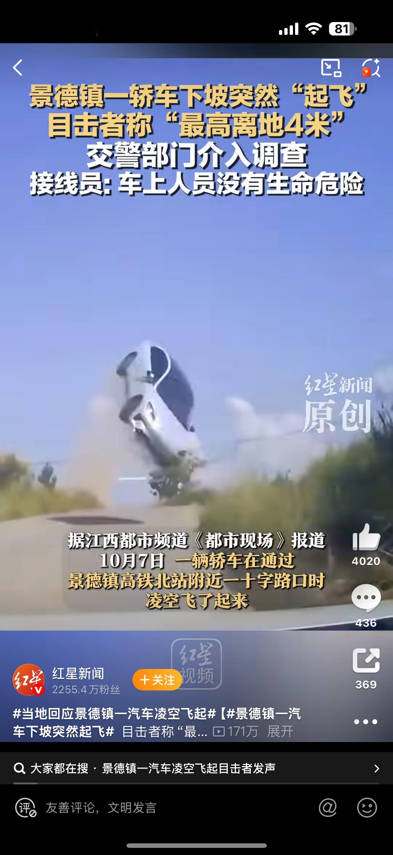 景德镇一汽车下坡突然起飞