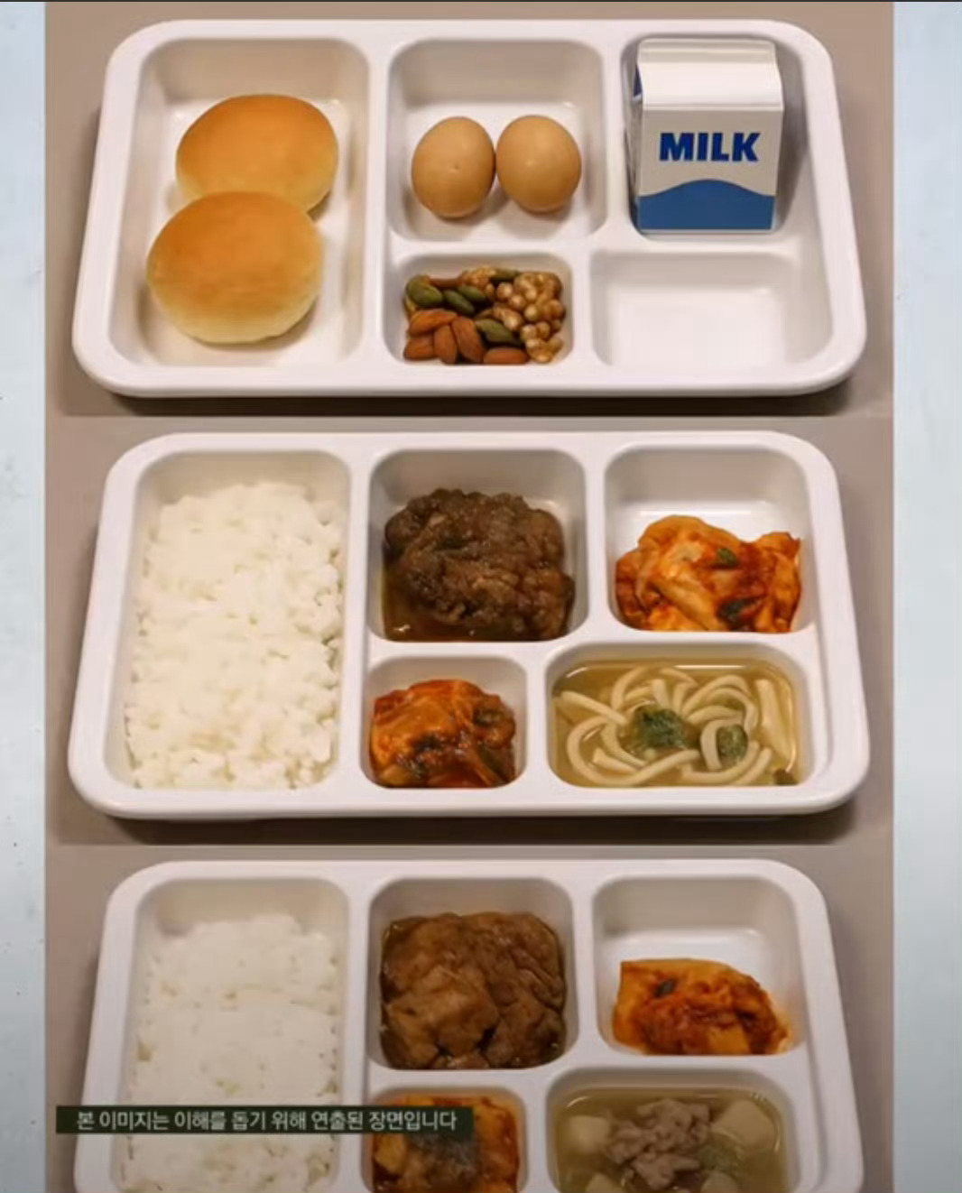 中秋节当天,尹锡悦的早餐为迷你芝士面包配水煮蛋,午餐是油豆腐乌冬面汤与炖猪排,晚餐是牛肉萝卜汤配秋刀鱼泡菜炖(图1)。
