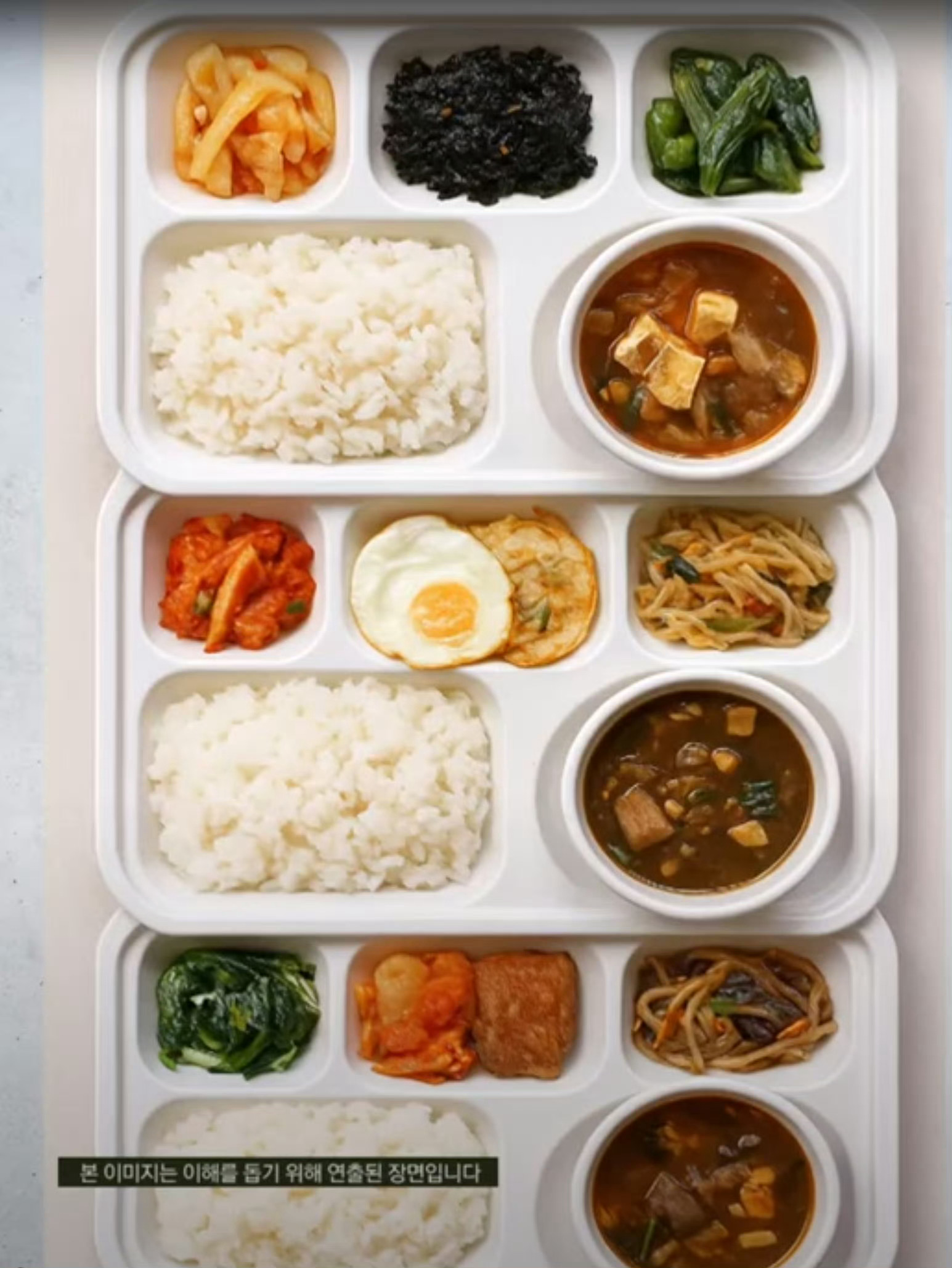 金建希的早餐是豆腐泡菜汤配凉拌牛蒡丝与炒紫菜,午餐是清国酱汤配煎蛋与凉拌野菜,晚餐是辣牛肉汤配杂菜(图2)。