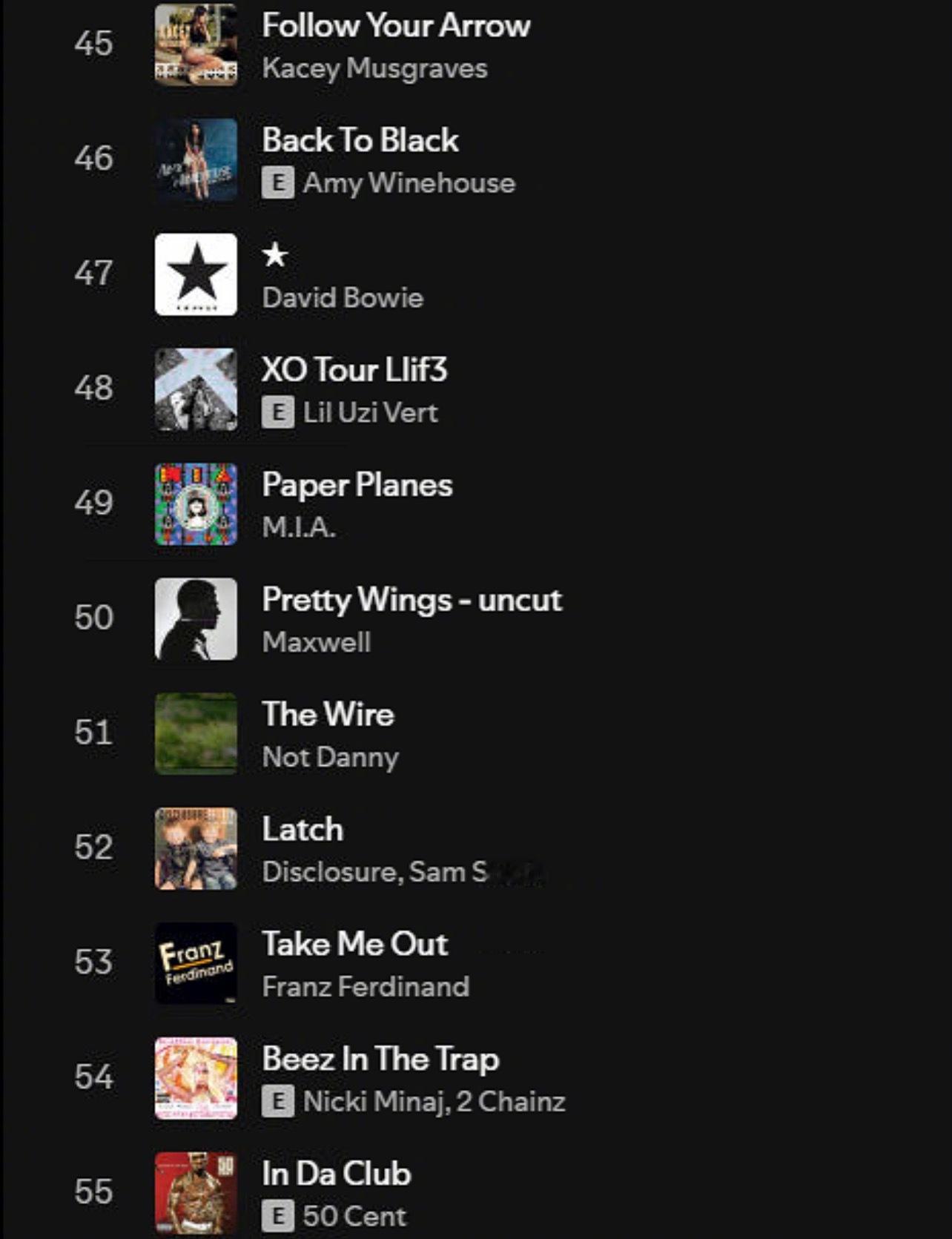 《滚石》杂志评选21世纪前25年250首最伟大歌曲排行榜!恭喜Missy Elliott经典作Get Ur Freak On被评为21世纪最伟大歌曲!Yeah Yeah Yeahs的Maps获得亚军!Beyonce联手JAY-Z经典作Crazy In Love获得季军!布兰妮经典作Toxic高居第9!来看你喜欢的歌曲上榜了吗?![酷][么么哒][yeah]