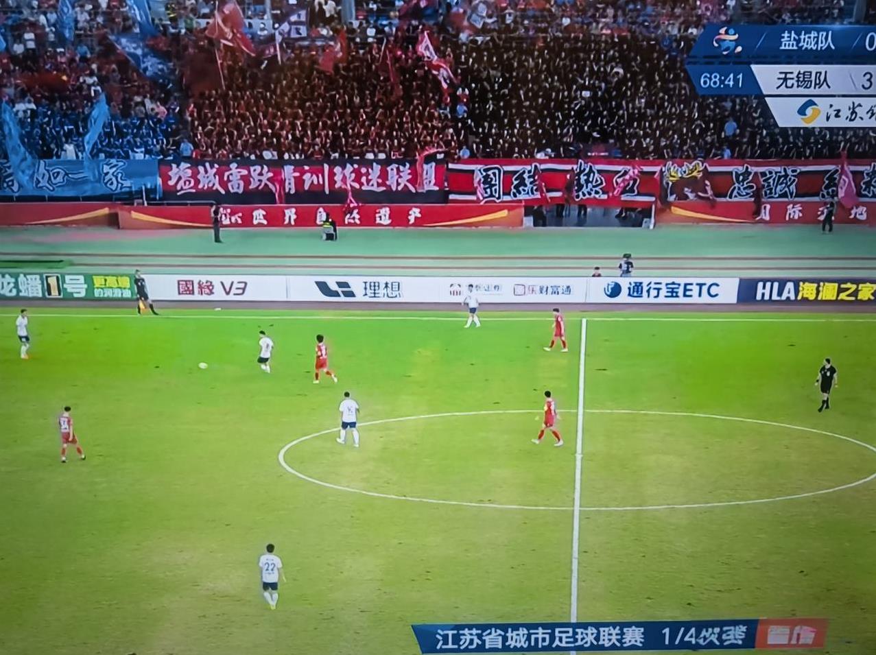 苏超再次升级!中央体育频道5台直播无锡队客场挑战盐城队的比赛!苏超的关注度越来越高,由央视5+体育频道现在升级为央视五体育频道直播!江苏省城市足球联赛1/4决赛,无锡队客场3:0领先盐城队!盐城队这场比赛打得非常不理想,现场的球迷可以说是已经座无虚席,但是盐城队的进球迟迟没有到来,就连连云港的球迷也来为盐城队加油,但是现场盐城队迟迟不能攻破对方的大门,在主场大比分落后!进军下一轮的机会难了!