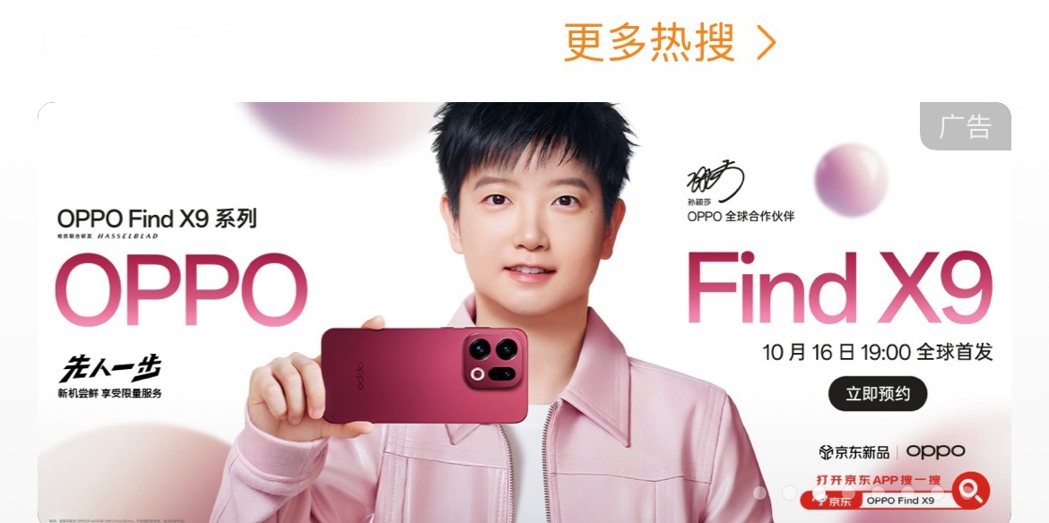 孙颖莎同款OPPOFindX9来了hello 粉色小莎[团圆时刻]