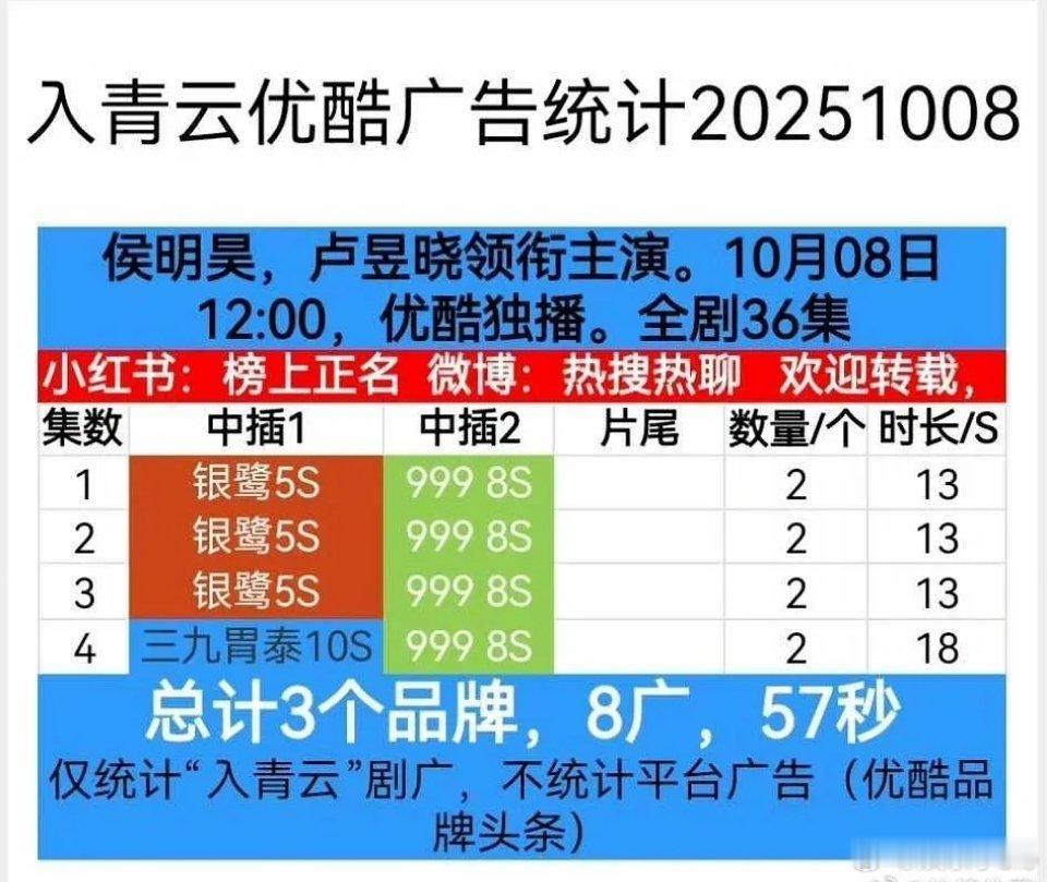 入青云➕广了什么水平?第4集加广,中插10S三九胃泰。中午首播还没有这个