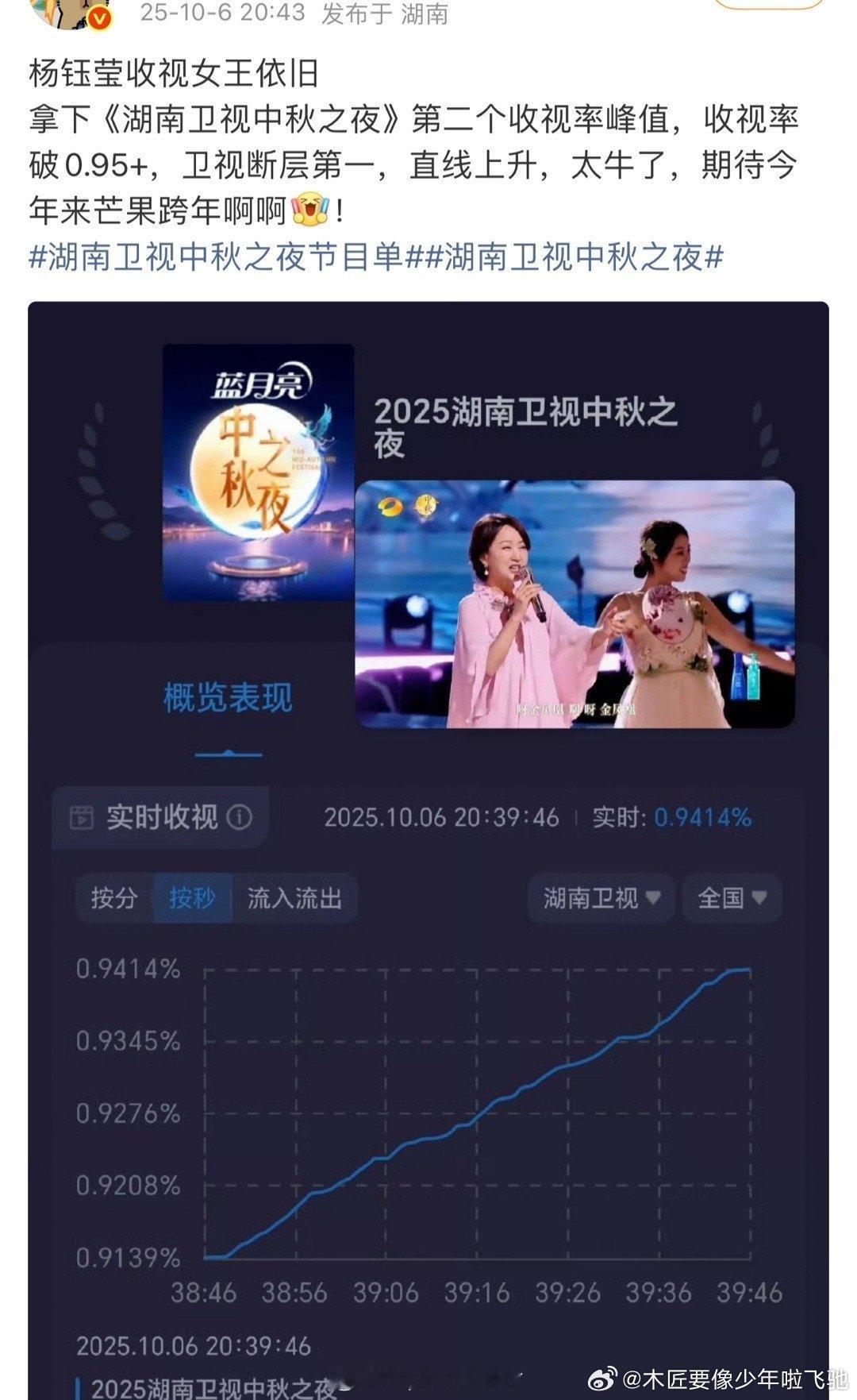 湖南卫视中秋之夜创造五年来收视最高。找几个主流媒体发了好多宣推搞,都是集中在陈楚生、周深、登陆少年、罗一舟这些有流量的艺人。丝毫不提,本次晚会收视最高的甜歌皇后杨钰莹做出的贡献。小心又被某些个体户的粉丝偷走收视实绩咯。